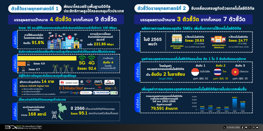 BDE เผยแพร่ผลการติดตามและประเมินผลการดำเนินงานตามนโยบายและแผนระดับชาติ ผลักดัน การขับเคลื่อนเทคโนโลยีดิจิทัลให้กับประเทศ เพื่อก้าวสู่ดิจิทัลไทยแลนด์อย่างเต็มศักยภาพ