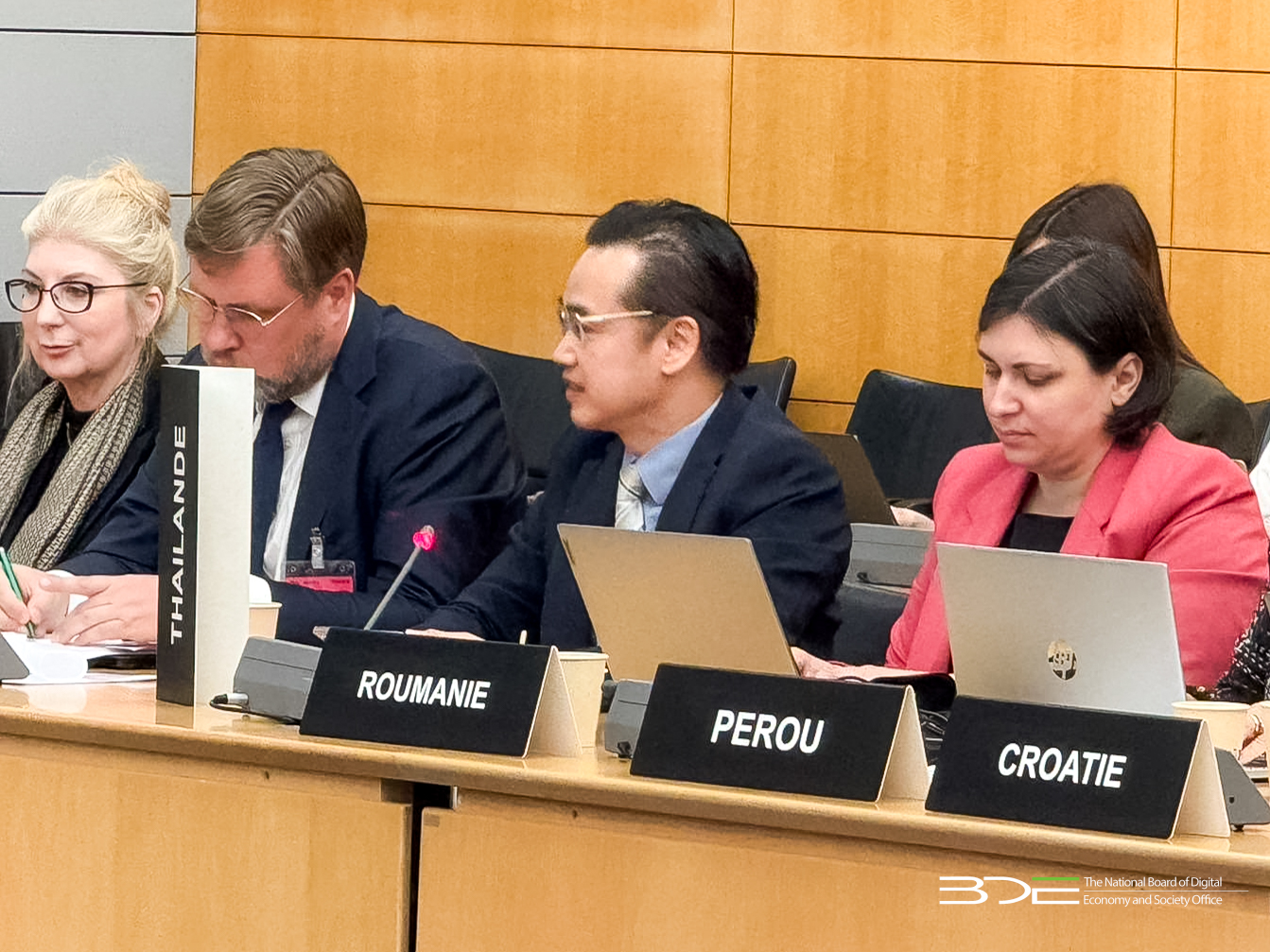 นายเวทางค์ พ่วงทรัพย์ เลขาธิการคณะกรรมการดิจิทัลเพื่อเศรษฐกิจและสังคมแห่งชาติ (BDE) และคณะ เข้าร่วมประชุม Digital Policy Committee (DPC) ครั้งที่ 95 ณ ที่ทำการใหญ่องค์การเพื่อความร่วมมือทางเศรษฐกิจและการพัฒนา (OECD) กรุงปารีส สาธารณรัฐฝรั่งเศส ระหว่างวันที่ 29 - 30 เมษายน 2568 โดยเป็นการเข้าประชุมประจำปี ด้านการพัฒนานโยบายดิจิทัลของประเทศสมาชิก เช่น กระตุ้นการเติบโตของเศรษฐกิจดิจิทัลที่สามารถเข้าถึงนวัตกรรม และเปิดกว้าง เพื่อความมั่งคั่งและความเป็นอยู่ที่ยั่งยืน โดย นายเวทางค์ฯ ได้เข้าร่วมแสดงความเห็นถึงทำการจัดทำ Digital Economy Outlook ของ OECD ซึ่งประเทศไทยได้นำแนวทางการปฏิบัติ และกำหนดแนวทางกิจกรรมที่ให้สอดคล้องกับนโยบายการพัฒนาดิจิทัลของไทยให้มีมาตรฐานในระดับนานาชาติ และแสดงถึงความร่วมมือของประเทศไทยต่อการดำเนินงานของ OECD