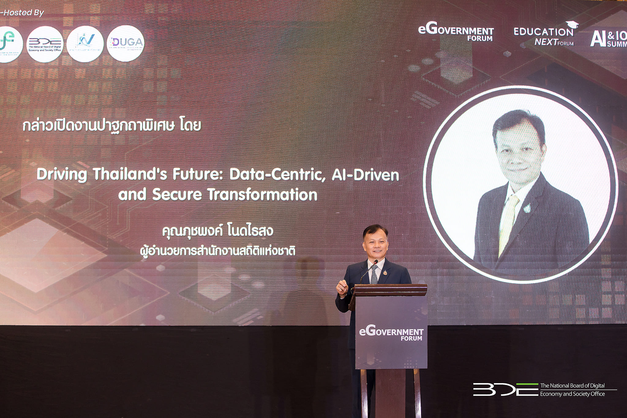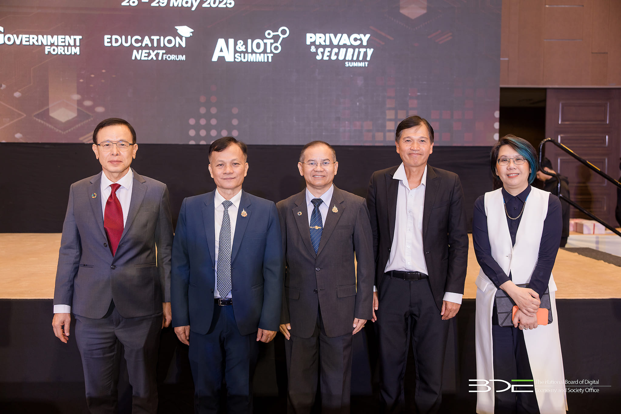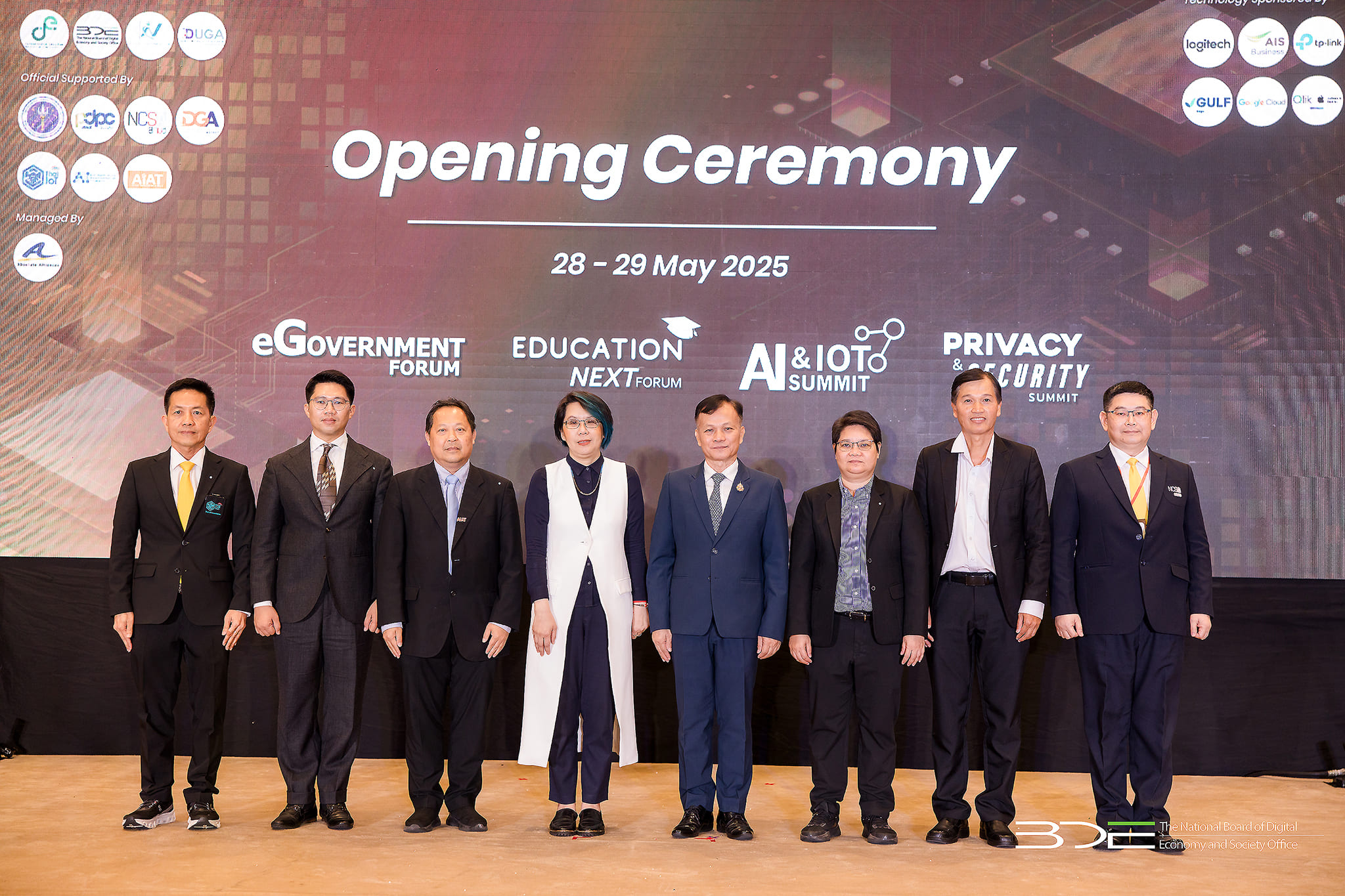 วันนี้ (28 พฤษภาคม 2568) นายธีรวุฒิ ธงภักดิ์ รองเลขาธิการคณะกรรมการดิจิทัลเพื่อเศรษฐกิจและสังคมแห่งชาติ (BDE) ร่วมพิธีเปิดงานในโครงการ May Series 2025 ประกอบด้วย งาน eGovernment Forum งาน Education NEXT Forum งาน AI & IoTs Summit และงาน Privacy & Security Summit โดยมีนายภุชพงค์ โนดไธสง ผู้อำนวยการสำนักงานสถิติแห่งชาติ เป็นประธานเปิดงานและเป็นองค์ปาฐกถพิเศษในงาน May Series 2025 ในหัวข้อ “Driving Thailand's Future : Data-Centric AI-Driven and Secure Transformation”ขับเคลื่อนอนาคตไทย : การเปลี่ยนแปลงที่มุ่งเน้นข้อมูล ขับเคลื่อนด้วย AI และความปลอดภัยในโลกไซเบอร์ จัดโดยกระทรวงดิจิทัลเพื่อเศรษฐกิจและสังคม (DE) สำนักงานคณะกรรมการดิจิทัลเพื่อเศรษฐกิจและสังคมแห่งชาติ (BDE) และสมาคมผู้ใช้ดิจิทัลไทย (DUGA) เป็นเจ้าภาพร่วม ซึ่งจัดขึ้นระหว่างวันที่ 28 – 29 พฤษภาคม 2568 ณ โรงแรมเดอะเบอร์เคลีย์ ประตูน้ำ กรุงเทพฯ