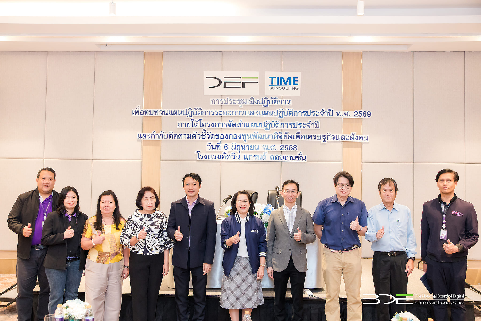 วันนี้ (6 มิถุนายน 2568) นางอำไพ จิตรแจ่มใส รองเลขาธิการคณะกรรมการดิจิทัลเพื่อเศรษฐกิจและสังคมแห่งชาติ (BDE) เป็นประธานการประชุมเชิงปฏิบัติการเพื่อทบทวนแผนปฏิบัติการระยะยาว และแผนปฏิบัติการประจำปี พ.ศ. 2569 ภายใต้โครงการจัดทำแผนปฏิบัติการประจำปี และกำกับตัวชี้วัดของกองทุนพัฒนาดิจิทัลเพื่อเศรษฐกิจและสังคม (กองทุนดีอี) เพื่อให้สอดคล้องกับนโยบายและแผนระดับชาติว่าด้วยการพัฒนาดิจิทัลเพื่อเศรษฐกิจและสังคม และแผนยุทธศาสตร์การส่งเสริมเศรษฐกิจดิจิทัล พร้อมทั้งบันทึกข้อตกลงการประเมินผลการดำเนินงานของทุนหมุนเวียน กำหนดให้มีการแผนปฏิบัติการดิจิทัล และแผนการบริหารทรัพยากรบุคคล ซึ่งในการประชุมครั้งนี้ มีวัตถุประสงค์เพื่อรวบรวมความคิดเห็นบุคลากรของกองทุนดีอี เพื่อทบทวนผลการดำเนินงานที่ผ่านมาและการดำเนินงานในปัจจุบัน ปัญหาอุปสรรค และข้อจำกัดในการดำเนินงานของกองทุนดีอี เปิดโอกาสให้บุคลากรของกองทุนดีอี ให้เข้ามามีส่วนร่วมในการกำหนดทิศทางการดำเนินงานภายใต้แผนปฏิบัติการระยะยาว และแผนปฏิบัติการประจำปี พ.ศ. 2569 ของกองทุนดีอีให้มีความทันสมัย และสามารถขับเคลื่อนการพัฒนาดิจิทัลเพื่อเศรษฐกิจและสังคมต่อไป ณ โรงแรมอัศวิน แกรนด์ คอนเวนชั่น กรุงเทพฯ