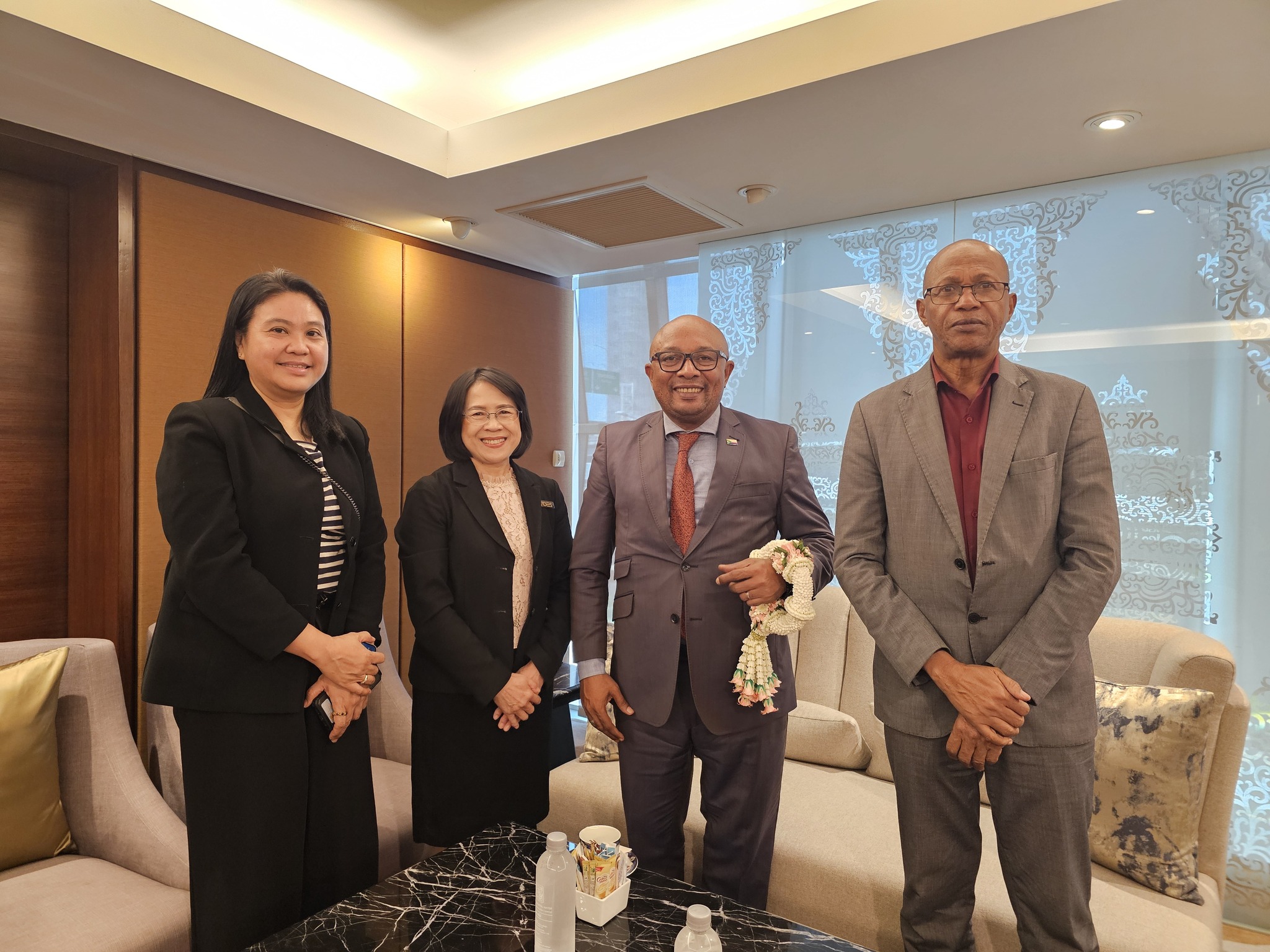 วานนี้ (23 มิถุนายน 2568) นางอำไพ จิตรแจ่มใส รองเลขาธิการคณะกรรมการดิจิทัลเพื่อเศรษฐกิจและสังคมแห่งชาติ (BDE) พร้อมด้วยนางสาวพัทธนันท์ สุณัฐพงศ์ ผู้อำนวยการกลุ่มพัฒนาระบบบริหาร สำนักงานคณะกรรมการดิจิทัลเพื่อเศรษฐกิจและสังคมแห่งชาติ ร่วมให้การต้อนรับ H.E. Mmadi Hassani Oumouri รัฐมนตรีว่าการกระทรวงไปรษณีย์ โทรคมนาคม เศรษฐกิจดิจิทัล และความโปร่งใส แห่งสหภาพคอโมโรส (Union of the Comoros) พร้อมกันนี้ นายธีรวุฒิ ธงภักดิ์ รองเลขาธิการคณะกรรมการดิจิทัลเพื่อเศรษฐกิจและสังคมแห่งชาติ (BDE) ให้การต้อนรับ H.E. Shawn Ntlhaile ผู้ช่วยรัฐมนตรีว่าการกระทรวงการสื่อสารและนวัตกรรมแห่ง สาธารณรัฐบอตสวานา (Republic of Botswana) โดยได้มีการแลกเปลี่ยนข้อมูลและแนวทางการดำเนินงานด้านไปรษณีย์ โทรคมนาคม เศรษฐกิจดิจิทัล ร่วมกับผู้แทนสหภาพคอโมโรส และเกี่ยวกับภารกิจด้านการสื่อสารร่วมกับผู้แทนสาธารณรัฐบอตสวานาเพื่อเข้าร่วมงานประชุมวิชาการนานาชาติด้าน AI (The 3rd UNESCO Global Forum on the Ethics of AI 2025) ซึ่งจะจัดขึ้นระหว่างวันที่ 24–27 มิถุนายน 2568 ณ โรงแรมเซ็นทาราแกรนด์ เซ็นทรัลเวิลด์ กรุงเทพมหานคร