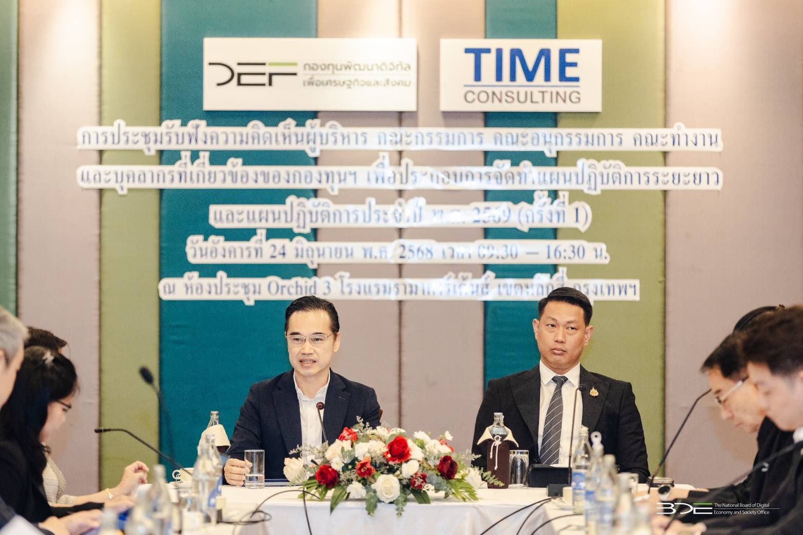 เมื่อวันอังคารที่ 24 มิถุนายน 2568 นายเวทางค์ พ่วงทรัพย์ เลขาธิการคณะกรรมการดิจิทัลเพื่อเศรษฐกิจและสังคมแห่งชาติ (BDE) เป็นประธานการประชุมรับฟังความคิดเห็นผู้บริหาร คณะกรรมการ คณะอนุกรรมการ คณะทำงาน และบุคลากรที่เกี่ยวข้องของกองทุนฯ ภายใต้โครงการจัดทำแผนปฏิบัติการประจำปี และกำกับติดตามตัวชี้วัดของกองทุนพัฒนาดิจิทัลเพื่อเศรษฐกิจและสังคม (ครั้งที่ 1) พร้อมด้วยนายอัฐฐเสฏฐ จุลเสฏฐพานิช เลขานุการรัฐมนตรีว่าการกระทรวงดิจิทัลเพื่อเศรษฐกิจและสังคม นางอำไพ จิตรแจ่มใส รองเลขาธิการคณะกรรมการดิจิทัลเพื่อเศรษฐกิจและสังคมแห่งชาติ นางสาววรรณศิริ พัวศิริ ผู้อำนวยการกองบริหารกองทุนฯ ตลอดจนผู้บริหารคณะกรรมการ และบุคลากรที่เกี่ยวข้องของกองทุนฯเข้าร่วม ณ โรงแรมรามาการ์เด้นส์ หลักสี่ กรุงเทพฯ