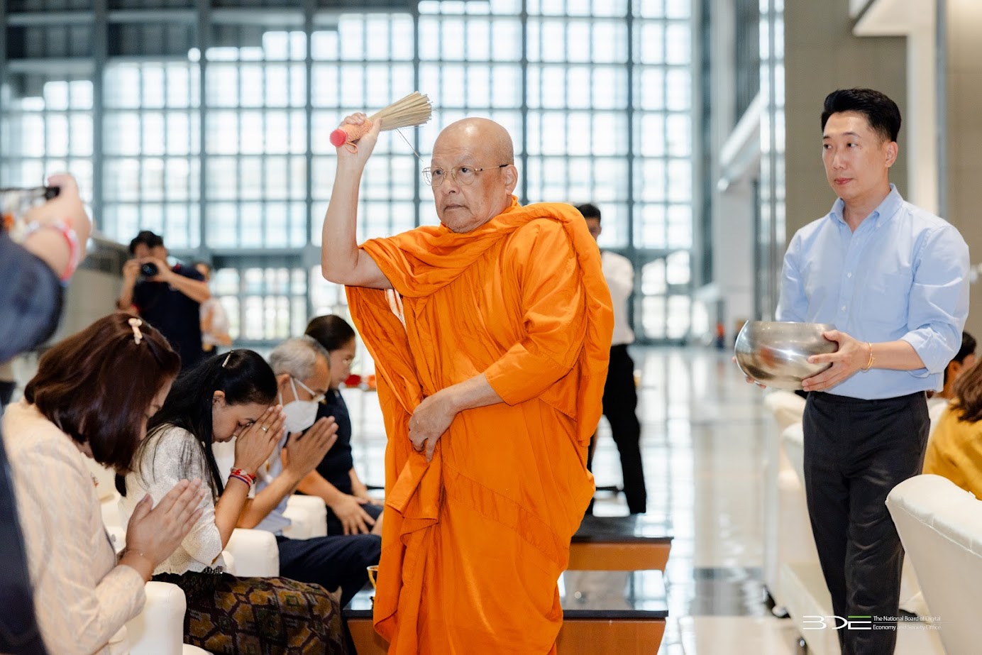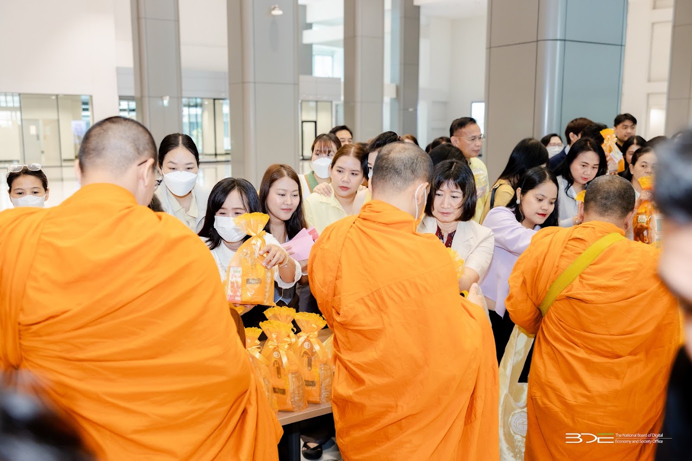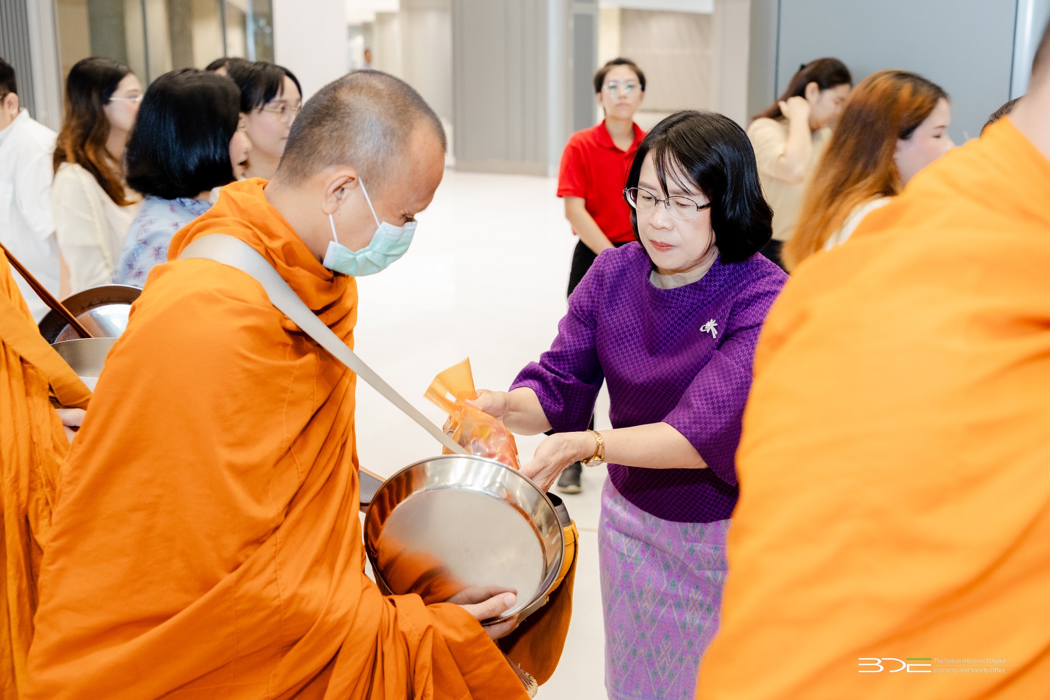 วันนี้ (7 กรกฎาคม 2568) นางอำไพ จิตรแจ่มใส รองเลขาธิการคณะกรรมการดิจิทัลเพื่อเศรษฐกิจและสังคมแห่งชาติ พร้อมด้วยนางสุวิชา บุญช่วยรอด ผู้อำนวยการศูนย์พัฒนานโยบายดิจิทัลเพื่อเศรษฐกิจและสังคม สำนักงานคณะกรรมการดิจิทัลเพื่อเศรษฐกิจและสังคมแห่งชาติ (BDE) ตลอดจนข้าราชการ พนักงานราชการ และเจ้าหน้าที่ BDE เข้าร่วมกิจกรรมออมบุญวันเข้าพรรษา ประจำปี 2568 โดยได้ร่วมกันทำบุญตักบาตร ข้าวสาร อาหารแห้ง และปัจจัยตามจิตศรัทธา ถวายแด่พระสงฆ์ จำนวน 9 รูป จากวัดชลประทานรังสฤษดิ์ พระอารามหลวง จังหวัดนนทบุรี จัดโดย บริษัท ธนารักษ์พัฒนาสินทรัพย์ จำกัด ณ ลานอเนกประสงค์ ชั้น 2 อาคารซี ศูนย์ราชการฯ แจ้งวัฒนะ กรุงเทพฯ