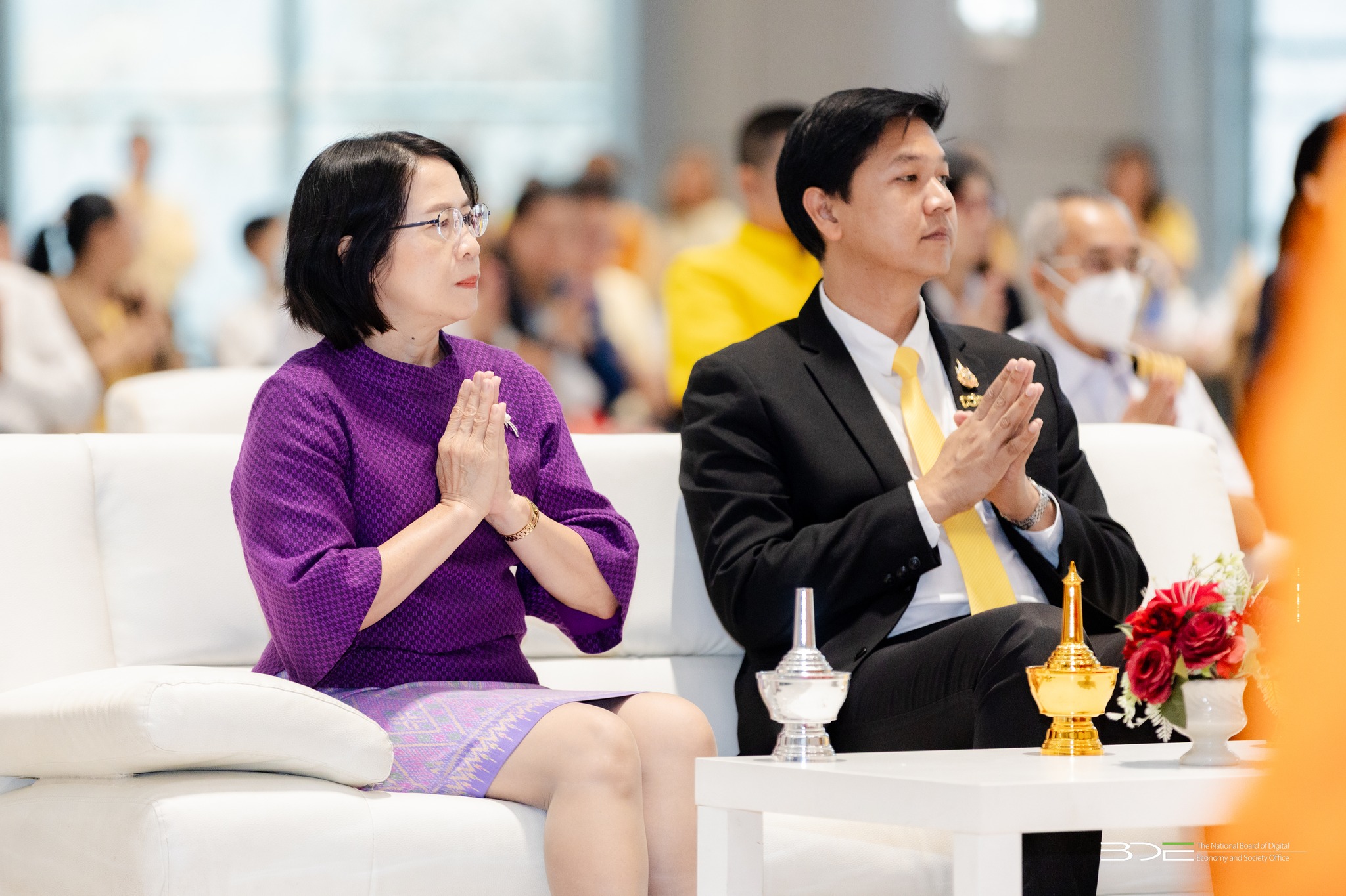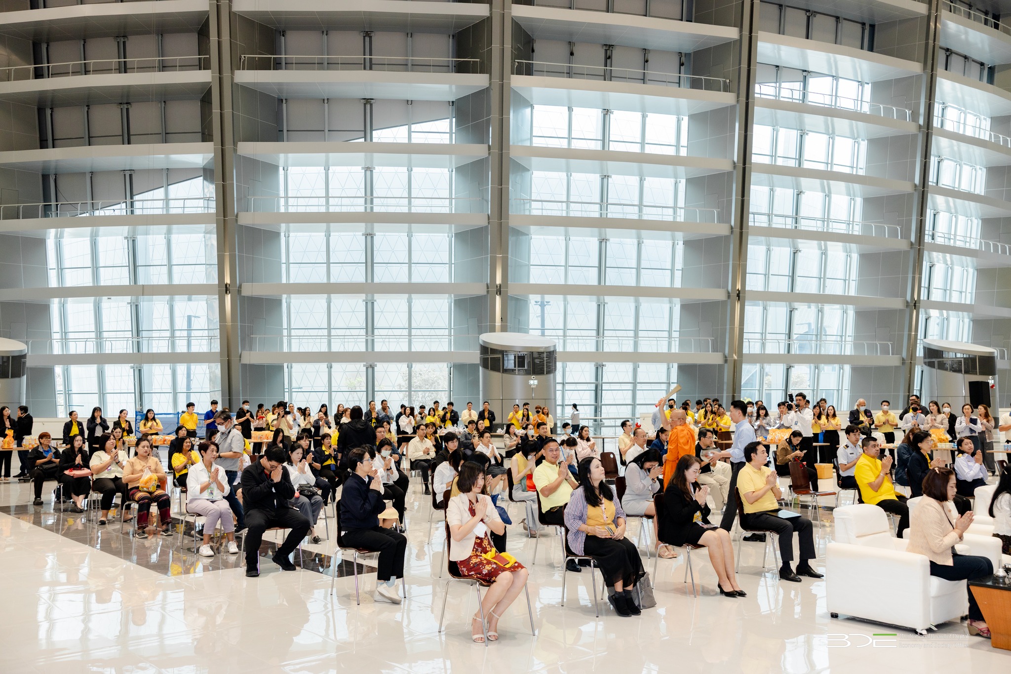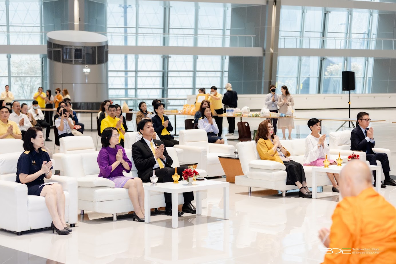 วันนี้ (7 กรกฎาคม 2568) นางอำไพ จิตรแจ่มใส รองเลขาธิการคณะกรรมการดิจิทัลเพื่อเศรษฐกิจและสังคมแห่งชาติ พร้อมด้วยนางสุวิชา บุญช่วยรอด ผู้อำนวยการศูนย์พัฒนานโยบายดิจิทัลเพื่อเศรษฐกิจและสังคม สำนักงานคณะกรรมการดิจิทัลเพื่อเศรษฐกิจและสังคมแห่งชาติ (BDE) ตลอดจนข้าราชการ พนักงานราชการ และเจ้าหน้าที่ BDE เข้าร่วมกิจกรรมออมบุญวันเข้าพรรษา ประจำปี 2568 โดยได้ร่วมกันทำบุญตักบาตร ข้าวสาร อาหารแห้ง และปัจจัยตามจิตศรัทธา ถวายแด่พระสงฆ์ จำนวน 9 รูป จากวัดชลประทานรังสฤษดิ์ พระอารามหลวง จังหวัดนนทบุรี จัดโดย บริษัท ธนารักษ์พัฒนาสินทรัพย์ จำกัด ณ ลานอเนกประสงค์ ชั้น 2 อาคารซี ศูนย์ราชการฯ แจ้งวัฒนะ กรุงเทพฯ