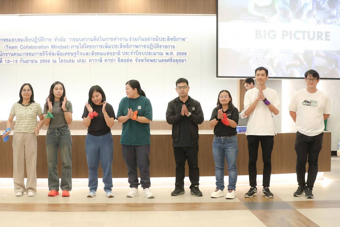 เมื่อวันที่ 12 กันยายน 2568 นายเวทางค์ พ่วงทรัพย์ เลขาธิการคณะกรรมการดิจิทัลเพื่อเศรษฐกิจและสังคมแห่งชาติ (BDE) เป็นประธานเปิดการอบรมเชิงปฏิบัติการ “กรอบความคิดในการทำงานร่วมกันอย่างมีประสิทธิภาพ” (Team Collaboration Mindset) ภายใต้โครงการเพิ่มประสิทธิภาพการปฏิบัติราชการ สำนักงานคณะกรรมการดิจิทัลเพื่อเศรษฐกิจและสังคมแห่งชาติ ประจำปีงบประมาณ พ.ศ. 2568 พร้อมด้วยนางอำไพ จิตรแจ่มใส รองเลขาธิการ BDE มอบแนวทางในการปฏิบัติงาน โดยมีนายธีรวุฒิ ธงภักดิ์ รองเลขาธิการ BDE ตลอดจนผู้บริหาร ข้าราชการ พนักงานราชการ และเจ้าหน้าที่ BDE จำนวนกว่า 100 คน เข้าร่วมการอบรม ซึ่งจัดขึ้นระหว่างวันที่ 12 – 13 กันยายน 2568 ณ โรงแรมเดอะ คาวาลิ คาซ่า รีสอร์ท จังหวัดพระนครศรีอยุธยา