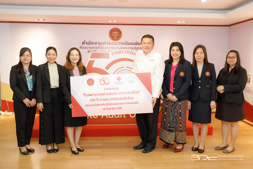 วันนี้ (18 กันยายน 2568) นางพุทธรักษา แดงรัตน์ ผู้อำนวยการสำนักงานเลขาธิการ ผู้แทนสำนักงานคณะกรรมการดิจิทัลเพื่อเศรษฐกิจและสังคมแห่งชาติ (BDE) พร้อมด้วยข้าราชการ BDE ร่วมแสดงความยินดีในงานครบรอบวันสถาปนา 150 ปี การตรวจเงินแผ่นดินไทย ของสำนักงานการตรวจเงินแผ่นดิน โดยมีผู้บริหารและข้าราชการสำนักงานการตรวจเงินแผ่นดิน ให้การต้อนรับ พร้อมกันนี้ BDE ได้ร่วมสมทบทุน “โรงพยาบาลจุฬาลงกรณ์ สภากาชาดไทย” ณ สำนักงานการตรวจเงินแผ่นดิน เขตพญาไท กรุงเทพฯ