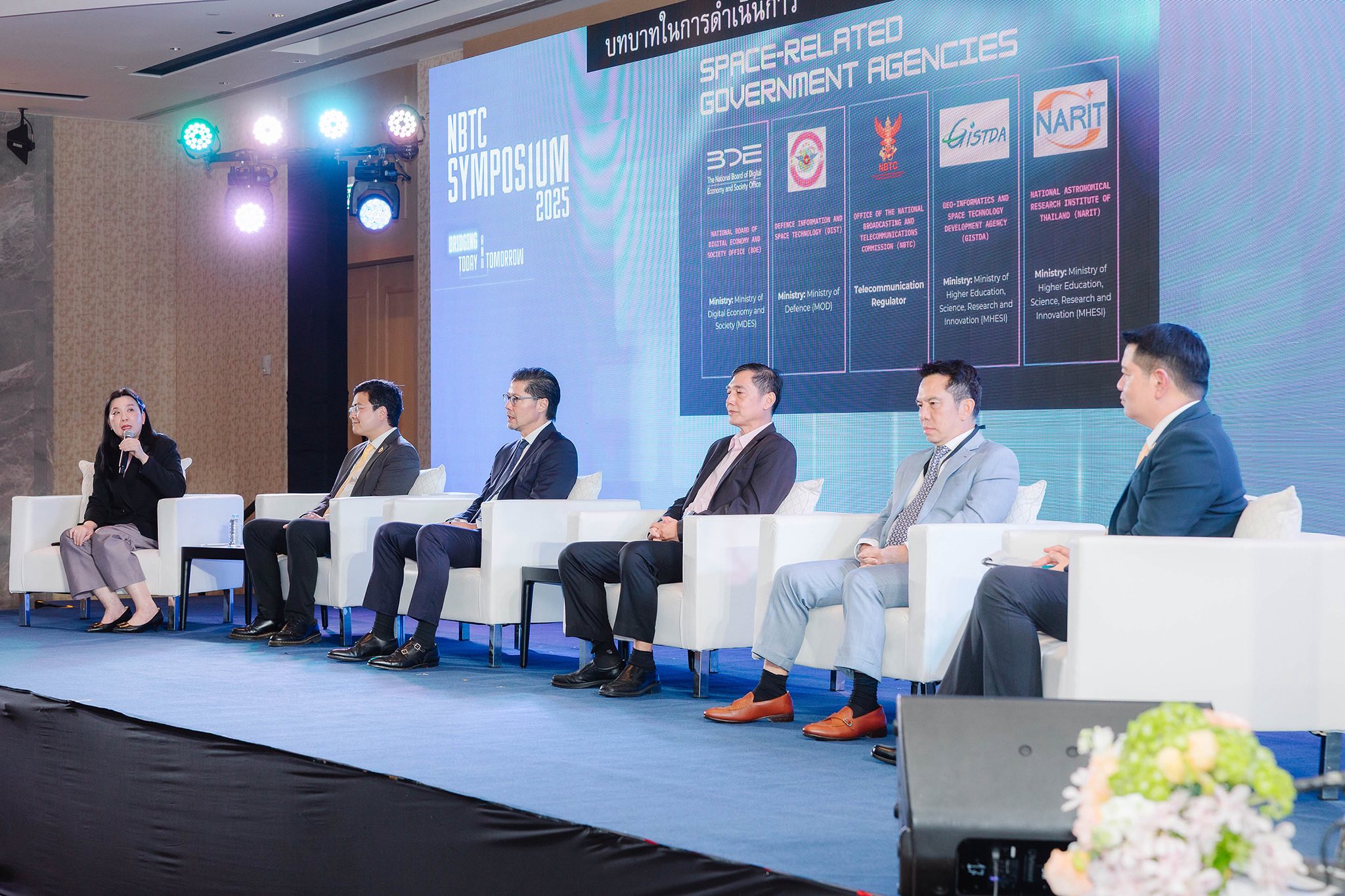 วานนี้ (10 ตุลาคม 2568) นางสาวพรพรรณ ตันนุกิจ ผู้อำนวยการกองกิจการอวกาศแห่งชาติ สำนักงานคณะกรรมการดิจิทัลเพื่อเศรษฐกิจและสังคมแห่งชาติ (BDE) ได้รับเกียรติเป็นวิทยากรร่วมเสวนาในการประชุม NBTC Symposium 2025 ภายใต้หัวข้อ “Thailand’s Space Economy and Satellite Development” จัดโดยสำนักงานคณะกรรมการกิจการกระจายเสียง กิจการโทรทัศน์ และกิจการโทรคมนาคมแห่งชาติ (กสทช.) ซึ่งเป็นการเสวนาร่วมกับผู้บริหารระดับสูงจากหน่วยงานชั้นนำด้านอวกาศและโทรคมนาคมของไทย ได้แก่ สำนักงานพัฒนาเทคโนโลยีอวกาศและภูมิสารสนเทศ (องค์การมหาชน) สถาบันวิจัยดาราศาสตร์แห่งชาติ (องค์การมหาชน) บริษัท ไทยคม จำกัด (มหาชน) และบริษัท มิว สเปซ แอนด์ แอดวานซ์ เทคโนโลยี จำกัด ณ โรงแรมดุสิตธานี กรุงเทพฯ
