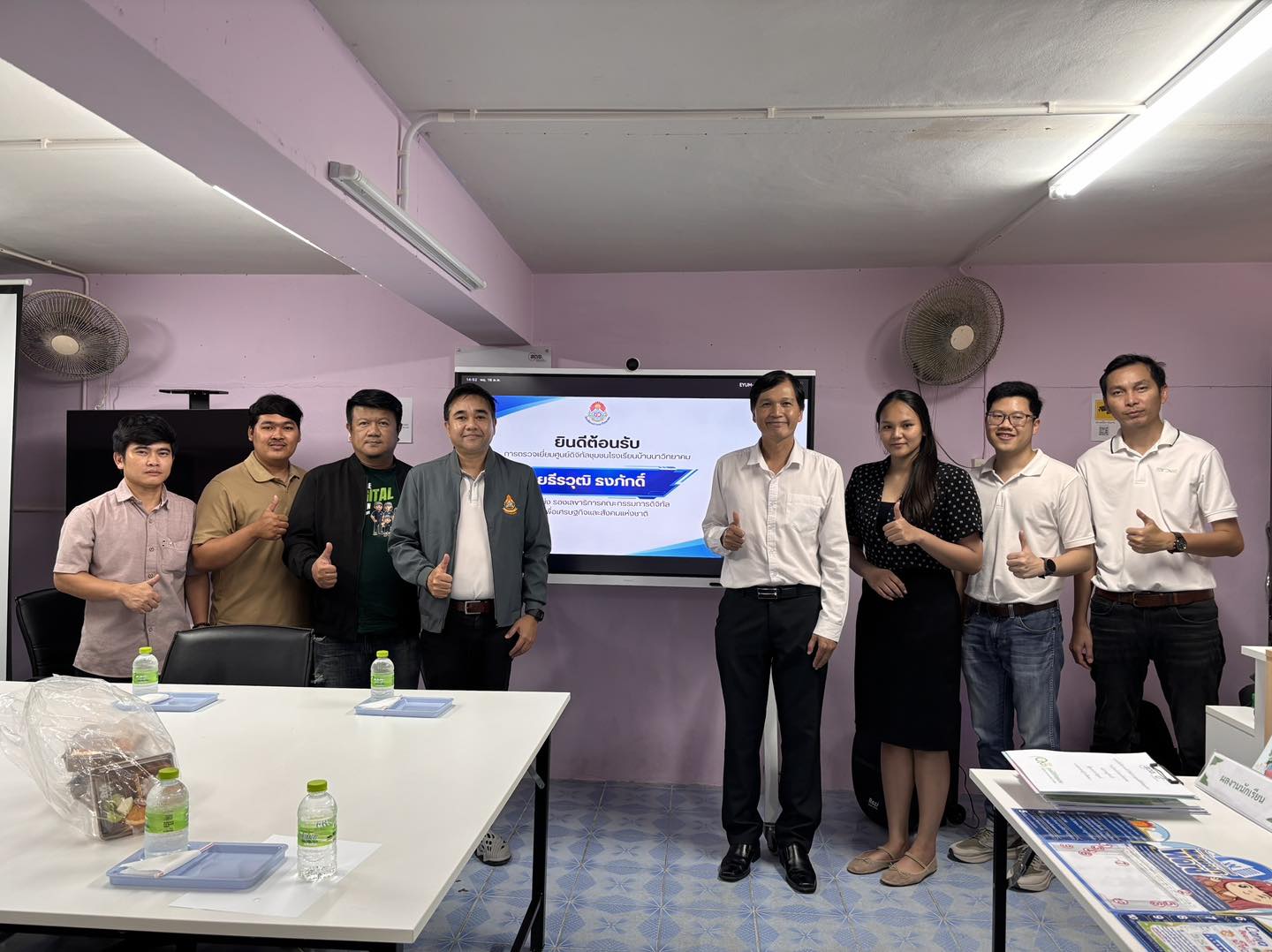 นายธีรวุฒิ ธงภักดิ์ รองเลขาธิการคณะกรรมการดิจิทัลเพื่อเศรษฐกิจและสังคมแห่งชาติ (BDE) สำนักงานคณะกรรมการดิจิทัลเพื่อเศรษฐกิจและสังคมแห่งชาติ ตลอดจนบุคลากร BDE ลงพื้นที่ตรวจเยี่ยมศูนย์ดิจิทัลชุมชน เพื่อรับทราบผลการดำเนินงานและสร้างขวัญกำลังใจให้กับเจ้าหน้าที่ประจำศูนย์ดิจิทัลชุมชน ระหว่างวันที่ 16 – 17 ตุลาคม 2568 ตามโครงการพัฒนาระบบนิเวศศูนย์ดิจิทัลชุมชนอย่างยั่งยืน กิจกรรมที่ 1 จัดให้มีศูนย์บริการอินเทอร์เน็ตสาธารณะ (ศูนย์ดิจิทัลชุมชน) จำนวน 1,722 ศูนย์ พื้นที่จังหวัดสุราษฎร์ธานีและจังหวัดนครศรีธรรมราช จำนวน 2 แห่ง ได้แก่ 1) ศูนย์ดิจิทัลชุมชนโรงเรียนบ้านนาวิทยาคม ตำบลบ้านนา อำเภอบ้านนาเดิม จังหวัดสุราษฎร์ธานี 2) ศูนย์ดิจิทัลชุมชนโรงเรียนราชประชานุเคราะห์ 7 ตำบลเสาธง อำเภอร่อนพิบูลย์ จังหวัดนครศรีธรรมราช