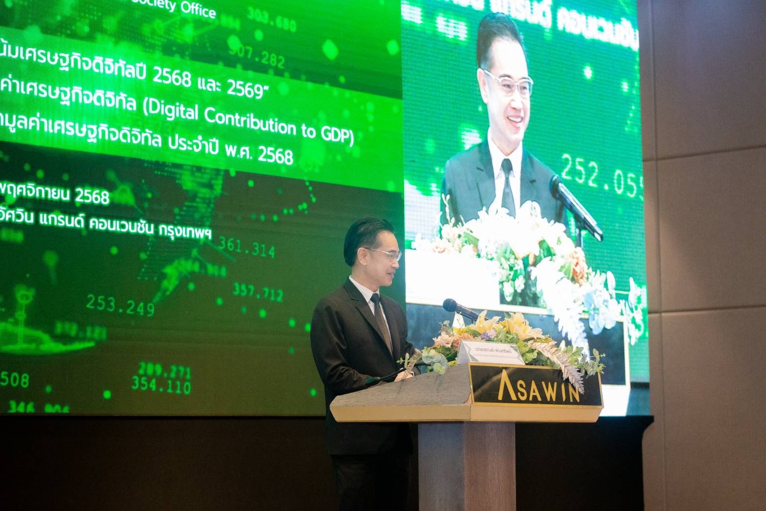 วันที่ 6 พฤศจิกายน 2568 ในงานสัมมนา “นโยบายและแนวโน้มเศรษฐกิจดิจิทัล ปี 2568 และ 2569” ณ ห้องพระพรหม โรงแรมอัศวิน แกรนด์ คอนเวนชัน กรุงเทพฯ