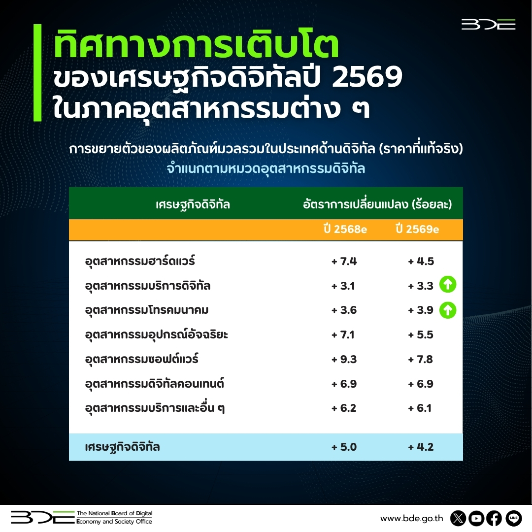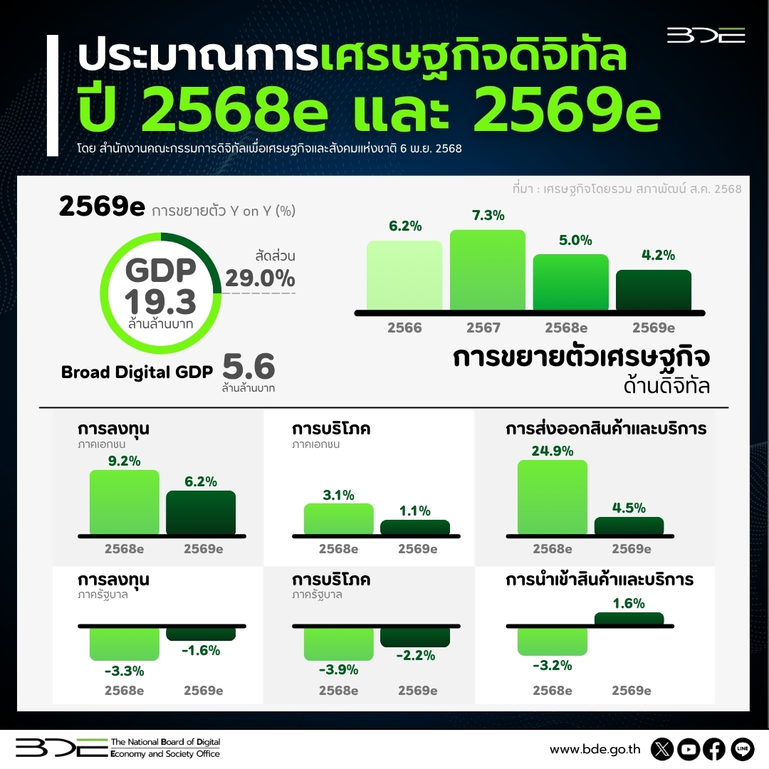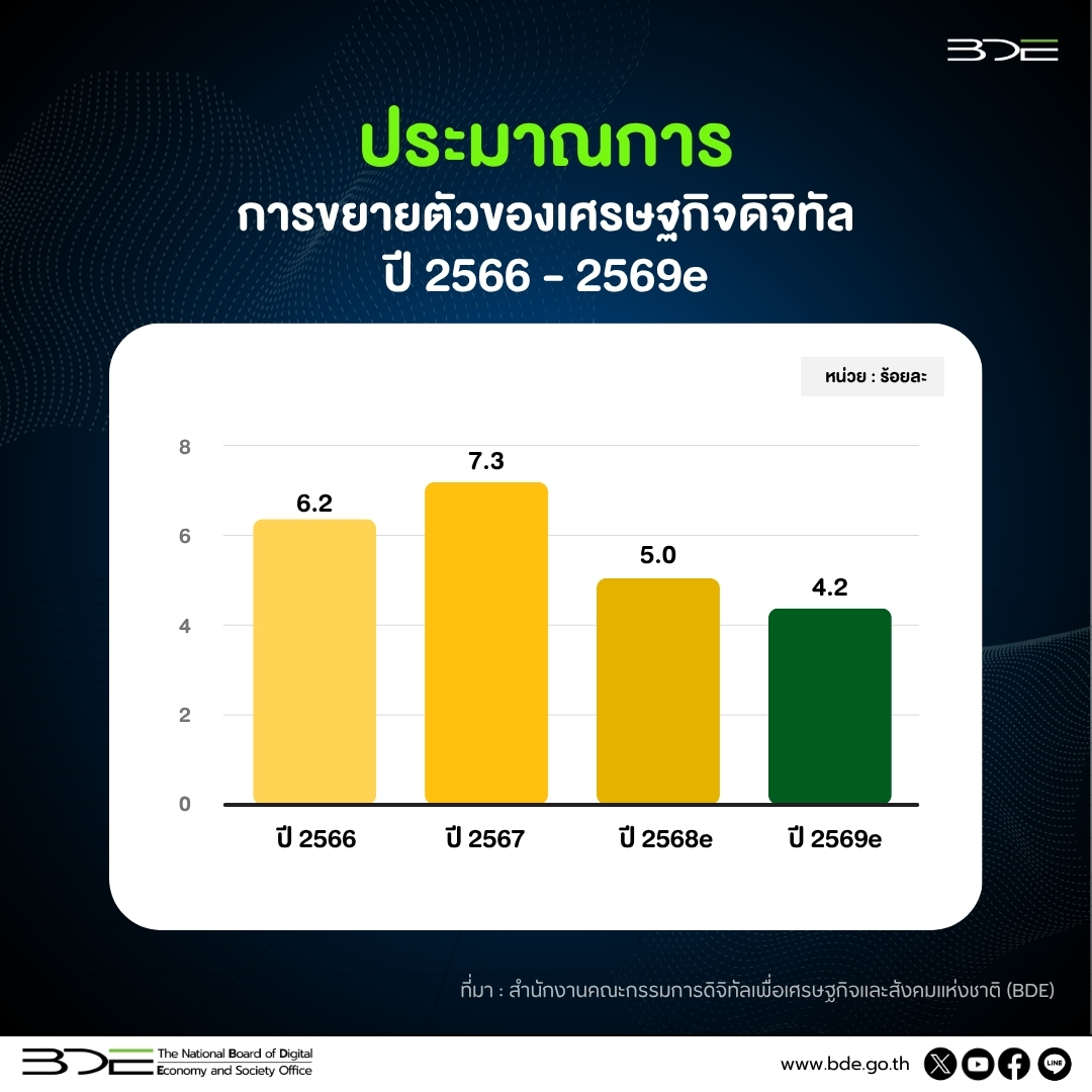 BDE รายงานประมาณการการขยายตัวของเศรษฐกิจดิจิทัล หรือ Digital GDP ปี 2568-2569e