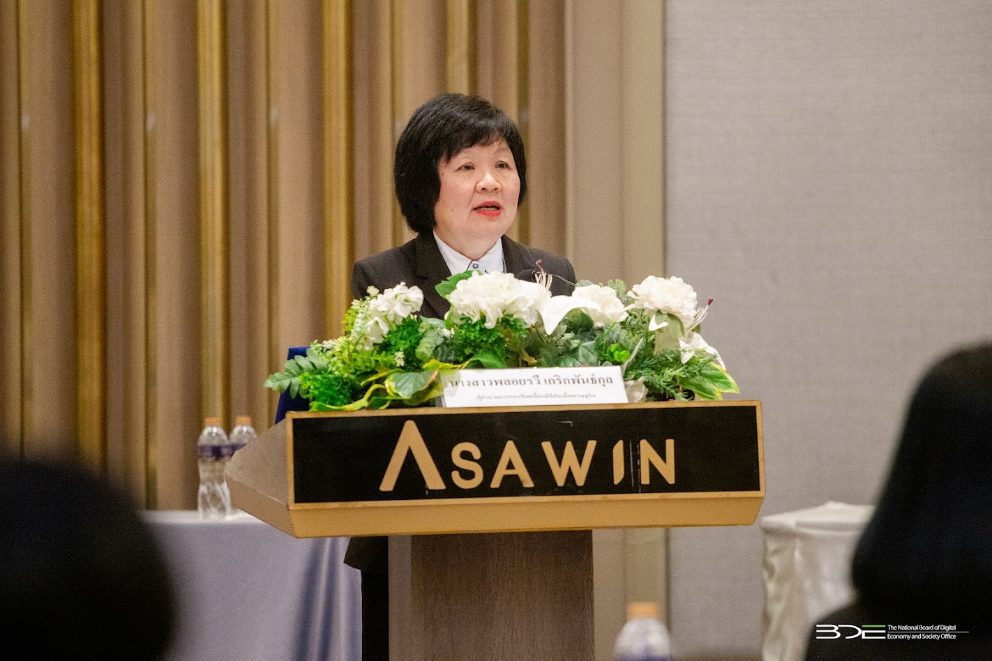 นางสาวพลอยรวี เกริกพันธ์กุล ผู้อำนวยการกองขับเคลื่อนดิจิทัลเพื่อเศรษฐกิจ BDE กล่าวว่า BDE ได้ดำเนินการรับรองหลักสูตรการพัฒนาทักษะด้านดิจิทัลสำหรับหน่วยงานภาครัฐที่สอดคล้องกับทักษะด้านดิจิทัลตามแนวทางการพัฒนาบุคลากรภาครัฐ พ.ศ. 2566 - 2570 ตามที่สำนักงานคณะกรรมการพัฒนาข้าราชการพลเรือนกำหนด และครอบคลุมการพัฒนาทักษะด้านดิจิทัลในข้าราชการและบุคลากรภาครัฐทุกกลุ่ม ทั้งกลุ่มผู้ปฏิบัติงานด้านเทคโนโลยีดิจิทัล หรือ กลุ่ม IT และผู้ปฏิบัติงานที่ไม่เกี่ยวข้องกับด้านเทคโนโลยีดิจิทัลโดยตรง หรือกลุ่ม Non-IT ที่จำเป็นในปัจจุบัน โดยดำเนินการเร่งกำหนดมาตรฐานของหลักสูตรการพัฒนาทักษะด้านดิจิทัล