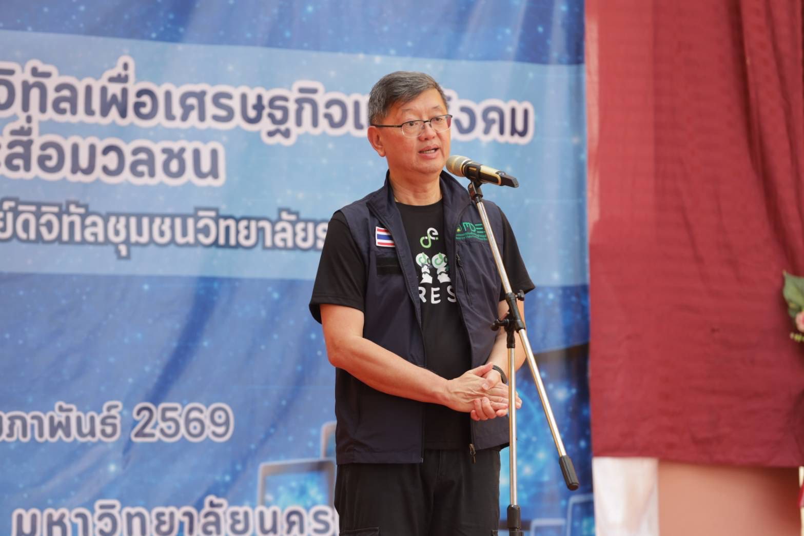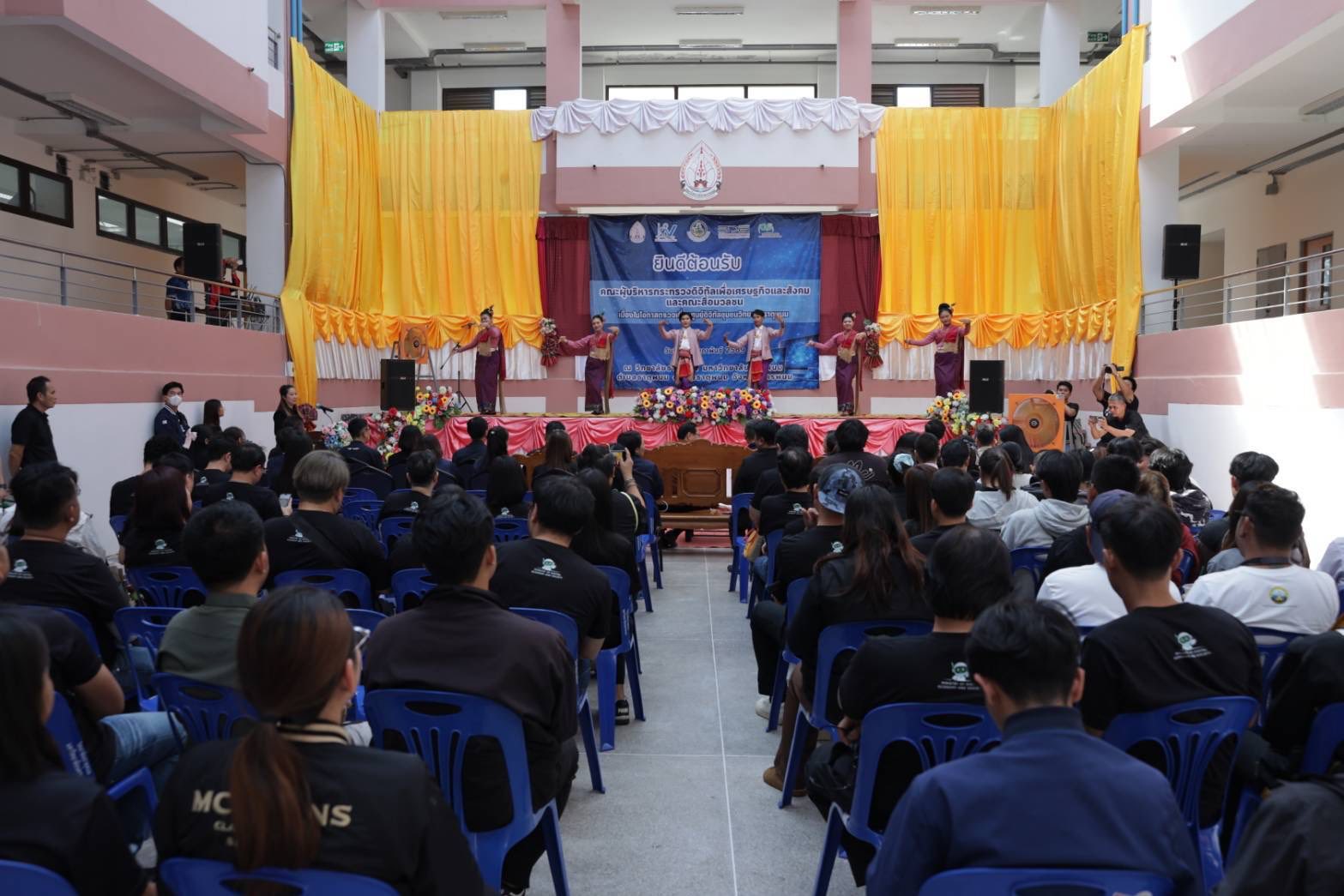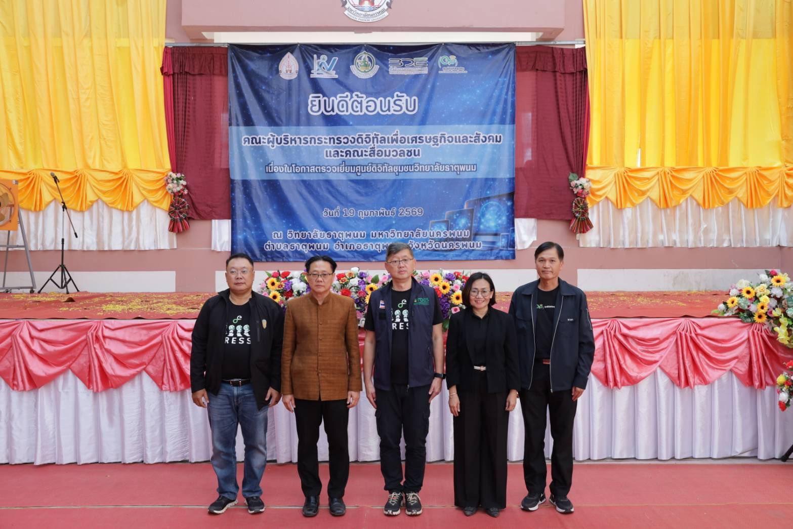 วันนี้ (19 กุมภาพันธ์ 2569) นายพชร อนันตศิลป์ ปลัดกระทรวงดิจิทัลเพื่อเศรษฐกิจและสังคม เป็นประธานการตรวจเยี่ยมศูนย์ดิจิทัลชุมชนวิทยาลัยธาตุพนม โดยมี นายธีรวุฒิ ธงภักดิ์ รองเลขาธิการคณะกรรมการดิจิทัลเพื่อเศรษฐกิจและสังคมแห่งชาติ (BDE) ให้การต้อนรับและให้ข้อมูลการดำเนินงานของศูนย์ดิจิทัลชุมชน พร้อมด้วยผู้บริหารกระทรวงดิจิทัลฯ หัวหน้าส่วนราชการในพื้นที่ ประชาชน และนักเรียน เข้าร่วม ณ ศูนย์ดิจิทัลชุมชนวิทยาลัยธาตุพนม อ.ธาตุพนม จ.นครพนม