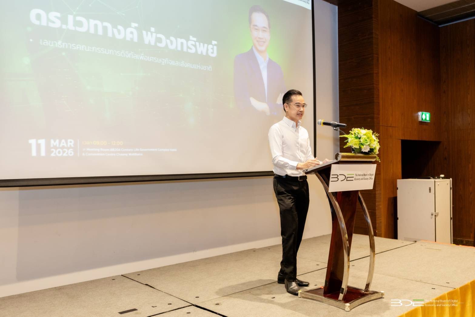 วันนี้ (11 มีนาคม 2569) นายเวทางค์ พ่วงทรัพย์ เลขาธิการคณะกรรมการดิจิทัลเพื่อเศรษฐกิจและสังคมแห่งชาติ (BDE) เป็นประธานการประชุมรับฟังความคิดเห็นและเผยแพร่ เรื่อง “5G-Advanced for Thailand : ยกระดับโครงสร้างพื้นฐานเพื่อรองรับการเติบโตเศรษฐกิจดิจิทัลแห่งอนาคต” และกล่าวปาฐกถาพิเศษ ในหัวข้อ “Keynote Speech on 5G-Advanced Enablement in Thailand” พร้อมด้วยนางสาวพรพรรณ ตันนุกิจ ผู้อำนวยการกองขับเคลื่อนดิจิทัลเพื่อเศรษฐกิจ สำนักงานคณะกรรมการดิจิทัลเพื่อเศรษฐกิจและสังคมแห่งชาติ กล่าวรายงาน โดยมีผู้แทนจากภาครัฐและภาคเอกชน เข้าร่วมการประชุม ณ ห้องประชุม BB 204 โรงแรมเซ็นทารา ไลฟ์ ศูนย์ราชการและคอนเวนชันเซ็นเตอร์ แจ้งวัฒนะ กรุงเทพฯ