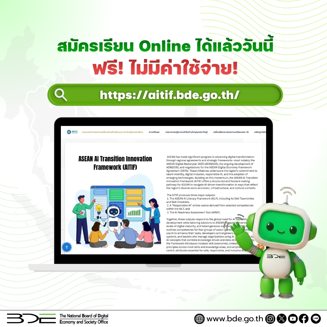 รู้จัก 'โครงการพัฒนากรอบแนวทางการเปลี่ยนผ่านนวัตกรรม AI ของอาเซียน (AITIF)' เพื่อให้ประเทศสมาชิกอาเซียน สามารถเปลี่ยนผ่านสู่ยุคที่ 'ขับเคลื่อนด้วย AI'