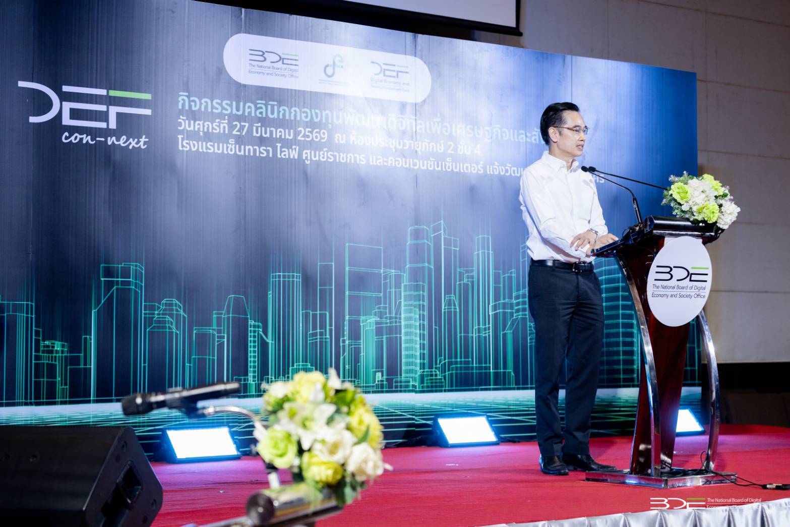 วันนี้ (27 มีนาคม 2569) นายเวทางค์ พ่วงทรัพย์ เลขาธิการคณะกรรมการดิจิทัลเพื่อเศรษฐกิจและสังคมแห่งชาติ (BDE) เป็นประธานเปิดกิจกรรม “DE Fund Clinic” หรือ “คลินิกกองทุน” ประจำปี 2569 ครั้งที่ 1 อย่างเป็นทางการ โดยมีนางสาววรรณศิริ พัวศิริ ผู้อำนวยการกองบริหารกองทุนพัฒนาดิจิทัลเพื่อเศรษฐกิจและสังคม BDE กล่าวรายงาน จัดโดยกองทุนพัฒนาดิจิทัลเพื่อเศรษฐกิจและสังคม (DE Fund) ภายใต้สำนักงานคณะกรรมการดิจิทัลเพื่อเศรษฐกิจและสังคมแห่งชาติ (BDE) กระทรวงดิจิทัลเพื่อเศรษฐกิจและสังคม (DE) โดยมีผู้เข้าร่วมกิจกรรมจากทุกภาคส่วนกว่า 200 คน สะท้อนถึงความสนใจของหน่วยงานต่าง ๆ ทั้งภาครัฐและเอกชน สถาบันการศึกษา รวมถึงผู้ที่มีความต้องการพัฒนาโครงการด้านดิจิทัลทั่วประเทศ จัดขึ้น ณ โรงแรมเซ็นทารา ไลฟ์ ศูนย์ราชการฯ แจ้งวัฒนะ กรุงเทพฯ