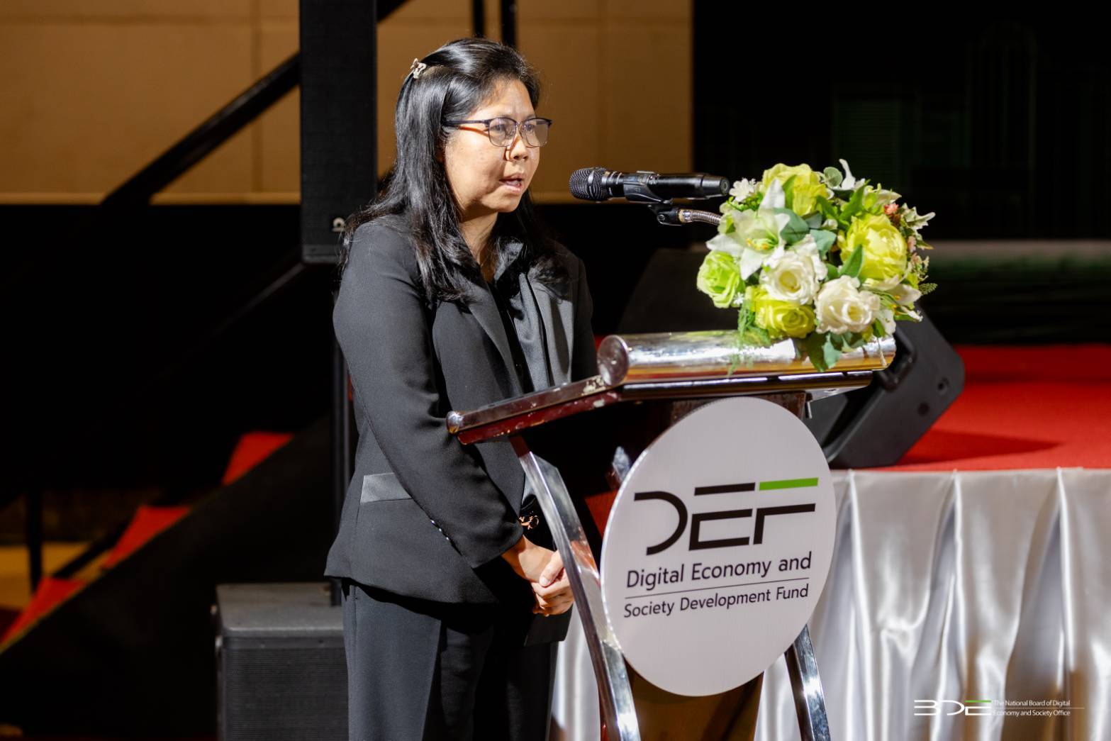 ดร.เวทางค์ พ่วงทรัพย์ เลขาธิการคณะกรรมการดิจิทัลเพื่อเศรษฐกิจและสังคมแห่งชาติ (BDE) กล่าวว่า ปัจจุบันเทคโนโลยีดิจิทัลได้เข้ามามีบทบาทสำคัญในทุกมิติของชีวิต โดยกองทุนพัฒนาดิจิทัลเพื่อเศรษฐกิจและสังคม หรือกองทุนดีอี ถือเป็นกลไกสำคัญในการขับเคลื่อนประเทศสู่ยุคดิจิทัลโดยมีหน้าที่ส่งเสริมและสนับสนุนโครงการที่ก่อให้เกิดประโยชน์ต่อสาธารณะ ไม่แสวงหากำไร ไม่เป็นการทำลายการแข่งขันและสามารถสร้างผลลัพธ์เชิงเศรษฐกิจและสังคมได้อย่างเป็นรูปธรรม สำหรับเป้าหมายหลักของกองทุนฯ คือการเป็น “กองทุนของทุกคน” ที่เข้าถึงง่าย โปร่งใส และสามารถเปลี่ยนแนวคิดให้กลายเป็นผลงานที่จับต้องได้จริง ดังนั้น กิจกรรมคลินิกกองทุน จึงเป็นเสมือนพื้นที่สำคัญในการเตรียมความพร้อมให้ทุกภาคส่วนได้เข้าใจบทบาทของกองทุน ตลอดจนแนวทางและขั้นตอนการพัฒนาโครงการ เพื่อให้สามารถจัดทำข้อเสนอขอรับการสนับสนุนได้อย่างมีประสิทธิภาพ
