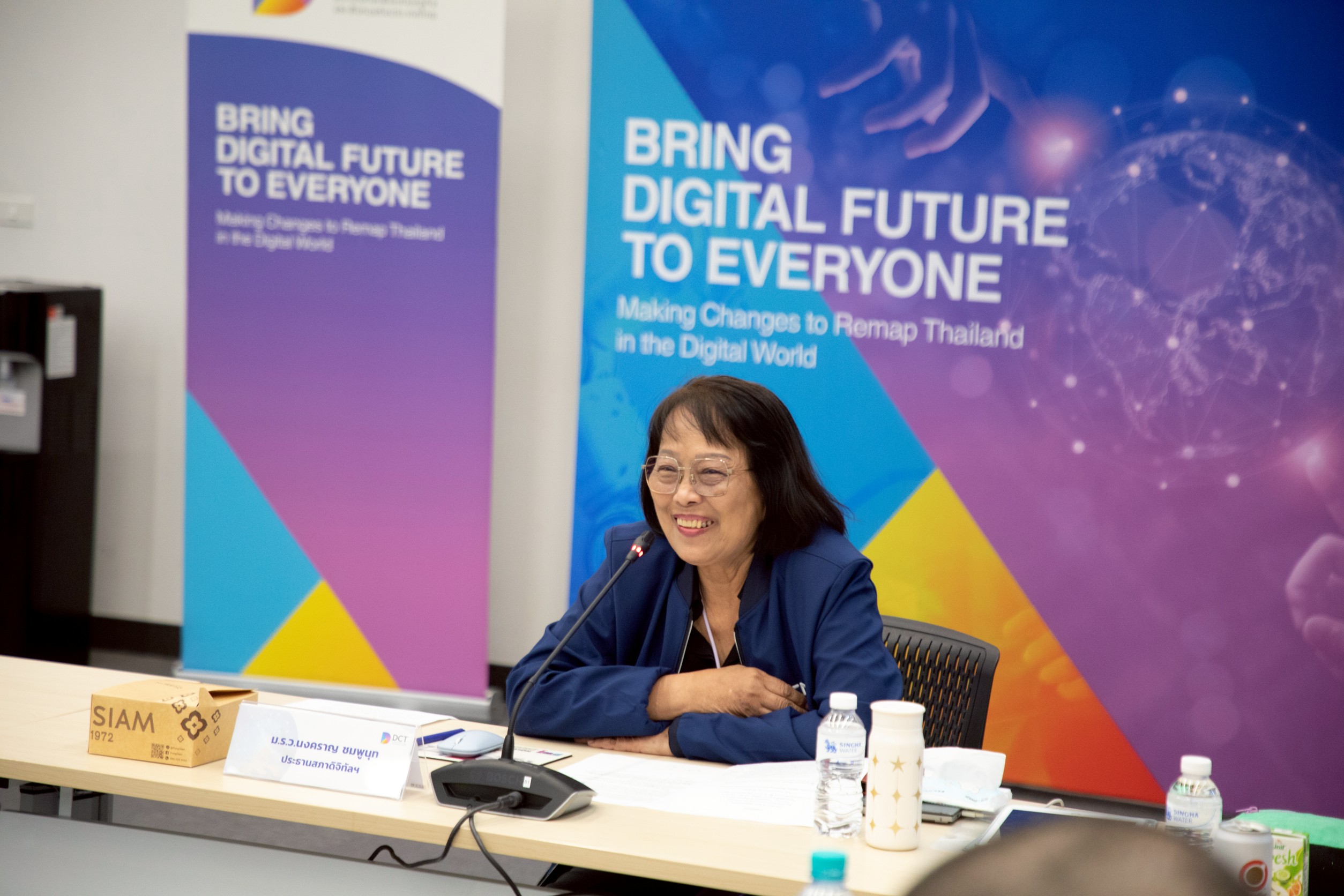 ทั้งนี้ นางสาวพรพรรณ ตันนุกิจ ผู้อำนวยการกองขับเคลื่อนดิจิทัลเพื่อเศรษฐกิจ BDE ได้กล่าวถึงการขับเคลื่อนเศรษฐกิจดิจิทัลตามนโยบายและแผนระดับชาติว่าด้วยการพัฒนาดิจิทัลเพื่อเศรษฐกิจและสังคม ซึ่งจะมีการสนับสนุนผ่านกลไกกองทุนพัฒนาดิจิทัลเพื่อเศรษฐกิจและสังคม (กองทุนดีอี) โดยเป็นกองทุนชั้นนำในการผลักดัน และเพิ่มขีดความสามารถการพัฒนาเศรษฐกิจและสังคมไทยด้วยเทคโนโลยีดิจิทัล พร้อมทั้งได้แนะนำถึงความสำคัญและประโยชน์ของข้อมูลจากการดำเนินโครงการ Thailand Digital Outlook ของ BDE ได้มีการสำรวจ และประเมินสถานภาพการพัฒนาด้านดิจิทัลของประเทศไทยตามกรอบแนวทาง องค์การเพื่อความร่วมมือทางเศรษฐกิจและการพัฒนา (OECD) รวมทั้งเครื่องมือการประเมินความพร้อมขององค์กรด้าน AI อันเป็นประโยชน์ต่อภาคเอกชนในอุตสาหกรรมดิจิทัลของประเทศไทย