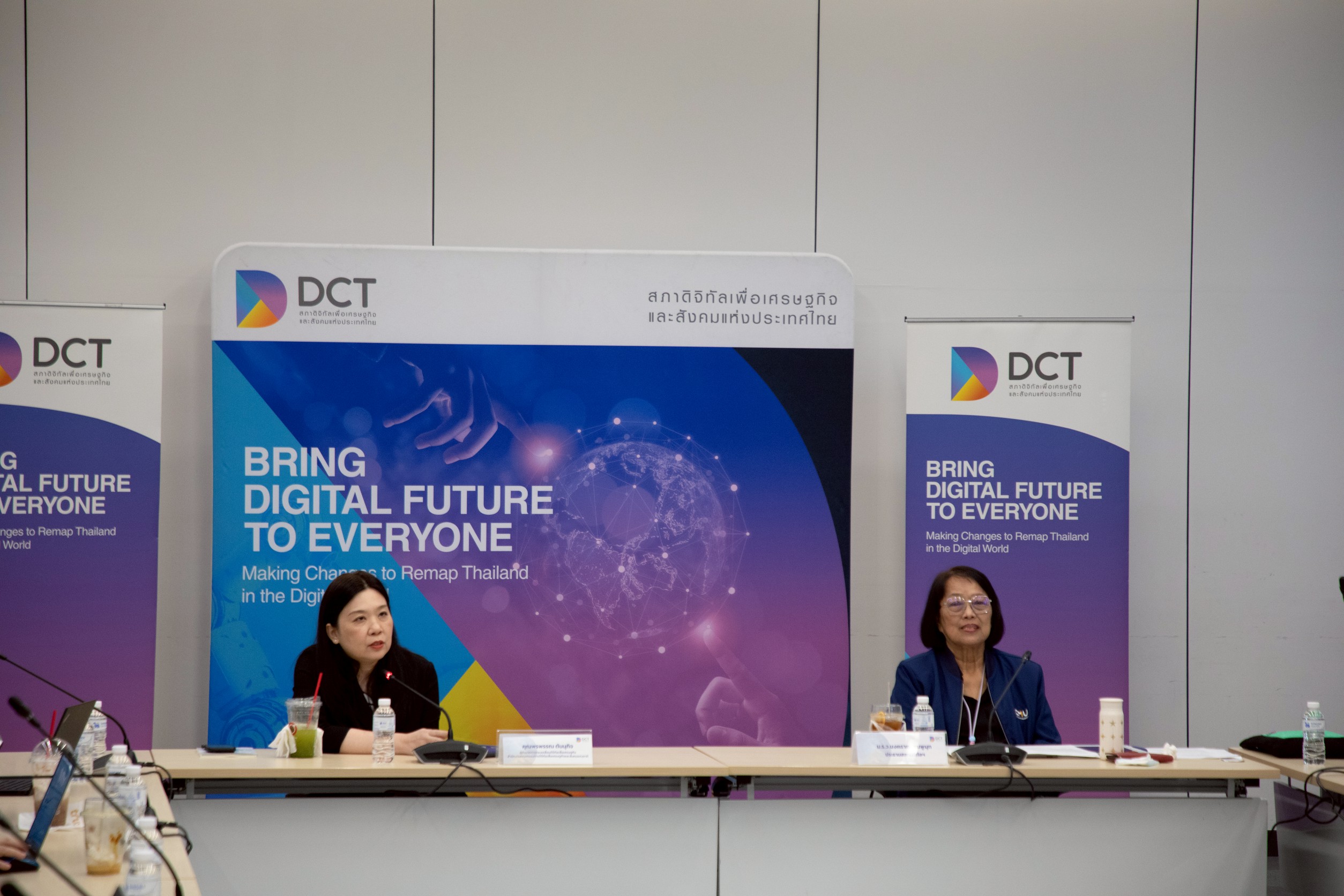 วานนี้ (2 เมษายน 2569) นางสาวพรพรรณ ตันนุกิจ ผู้อำนวยการกองขับเคลื่อนดิจิทัลเพื่อเศรษฐกิจ สำนักงานคณะกรรมการดิจิทัลเพื่อเศรษฐกิจและสังคมแห่งชาติ (BDE) ร่วมกับ ม.ร.ว.นงคราญ ชมพูนุท ประธานสภาดิจิทัลเพื่อเศรษฐกิจและสังคมแห่งประเทศไทย (DCT) ร่วมเป็นประธานประชุมเชิงปฏิบัติการภายใต้หัวข้อ “Scaling Thailand’s Digital Industry : ผนึกรัฐ–เอกชน ยกระดับอุตสาหกรรมดิจิทัล ไทยสู่เวทีโลก” โดยมีผู้แทนจากหน่วยงานภาครัฐและเอกชนเข้าร่วมกว่า 40 หน่วยงาน เพื่อแลกเปลี่ยนมุมมองและรับฟังข้อเสนอจากภาครัฐและเอกชน ถึงภาพรวมและสถานการณ์ปัจจุบันของอุตสาหกรรมดิจิทัลของประเทศไทย ทั้ง 6 กลุ่มอุตสาหกรรมดิจิทัล ประกอบด้วย Digital Content, Infrastructure, Hardware & Smart Device, Software & Digital Service จัดขึ้นในวันที่ 30 มีนาคม และ 2 เมษายน 2569 ณ อาคาร ทรู ดิจิทัล พาร์ค เวสต์ กรุงเทพฯ