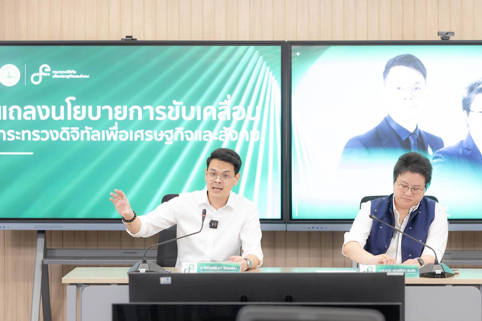 วันนี้ (16 เมษายน 2569) นายไชยชนก ชิดชอบ รัฐมนตรีว่าการกระทรวงดิจิทัลเพื่อเศรษฐกิจและสังคม พร้อมด้วยนางสาวแนน บุณย์ธิดา สมชัย รัฐมนตรีช่วยว่าการกระทรวงดิจิทัลเพื่อเศรษฐกิจและสังคม มอบนโยบายการปฏิบัติงานของกระทรวงดิจิทัลเพื่อเศรษฐกิจและสังคมแก่สื่อมวลชน โดยมีนายเวทางค์ พ่วงทรัพย์ เลขาธิการคณะกรรมการดิจิทัลเพื่อเศรษฐกิจและสังคมแห่งชาติ (BDE) เข้าร่วมรับฟังนโยบายฯ ณ ห้องประชุม 202 ชั้น 2 อาคารกระทรวงดิจิทัลเพื่อเศรษฐกิจและสังคม (อาคารซี) ศูนย์ราชการ แจ้งวัฒนะ กรุงเทพฯ