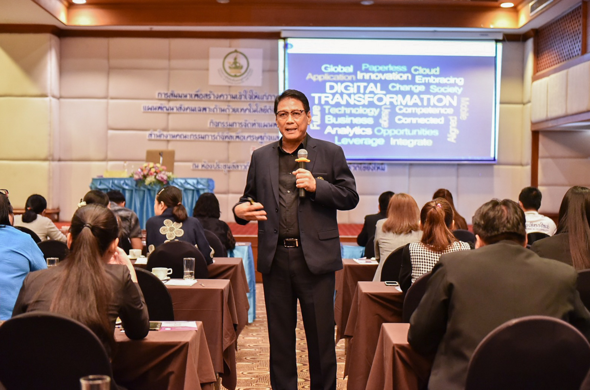 นอกจากนี้มีการบรรยายพิเศษเรื่อง “จุดเปลี่ยนแปลงการพัฒนารัฐบาลดิจิทัล : Digital Transformation”และนำเสนอกลไกการขับเคลื่อนการพัฒนาสังคมด้วยเทคโนโลยีดิจิทัล ภายใต้แผนพัฒนาสังคมเฉพาะด้านด้วยเทคโนโลยีดิจิทัล (Digital Social Plan) เพื่อให้ผู้เข้าร่วมการประชุมได้ทราบถึงนโยบายและแผนการขับเคลื่อนดิจิทัลเพื่อเศรษฐกิจและสังคม ที่เกี่ยวข้องกับประชาชนในภาคส่วนต่างๆ โดยมีการดำเนินการ ที่สอดคล้องตาม 6 ยุทธศาสตร์ ของนโยบายและแผนระดับชาติว่าด้วยการพัฒนาดิจิทัลเพื่อเศรษฐกิจและสังคม (พ.ศ. 2561 – 2580) ที่นำไปสู่การปฏิบัติให้ประเทศไทยบรรลุวิสัยทัศน์ “ปฏิรูปประเทศไทยสู่ดิจิทัลไทยแลนด์” บรรลุเป้าประสงค์ในการพัฒนาสังคมไทย อย่างยั่งยืนด้วยเทคโนโลยีดิจิทัลตามหลัก ปรัชญาเศรษฐกิจพอเพียง ตลอดจนเกิดการบูรณาการข้อมูลอย่างเป็นเอกภาพและมีประสิทธิภาพต่อไป