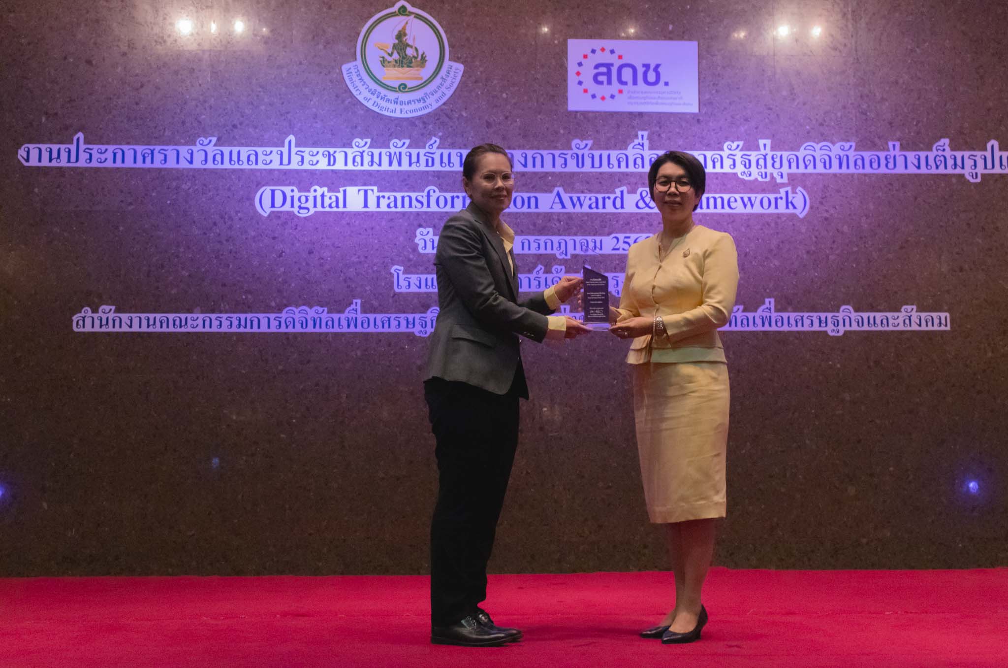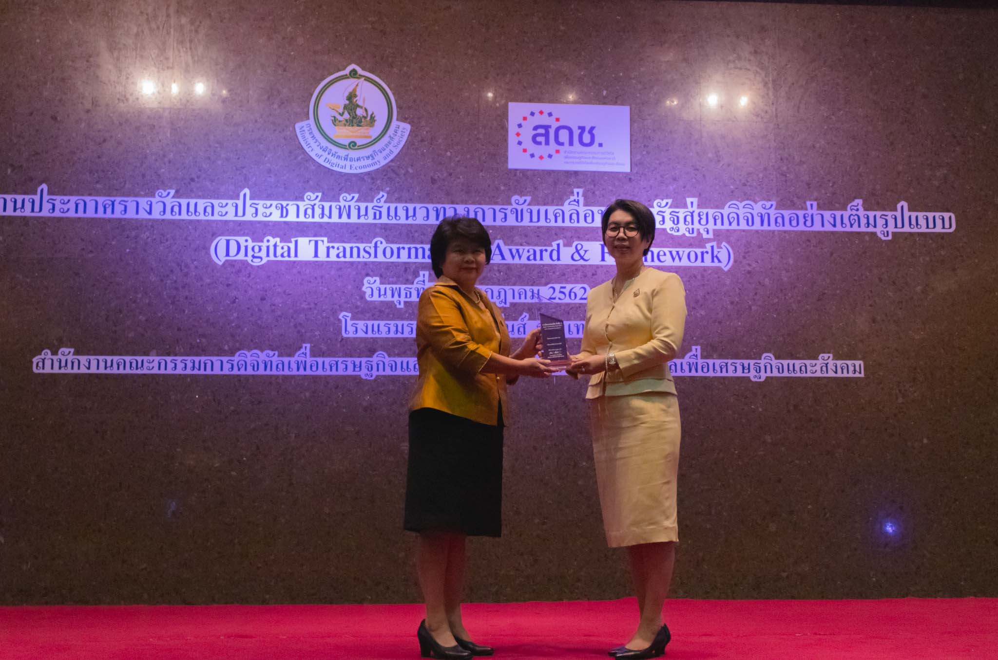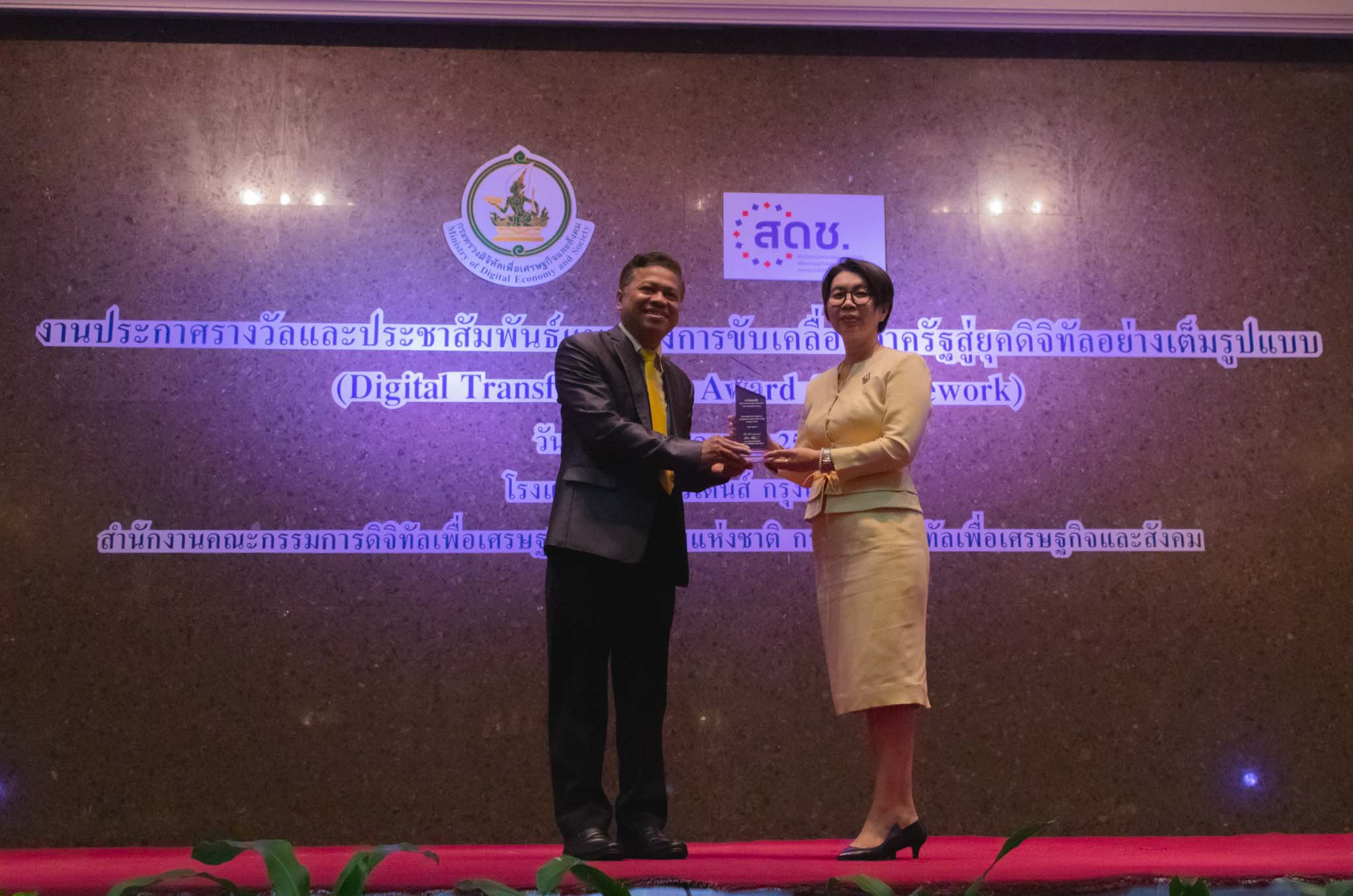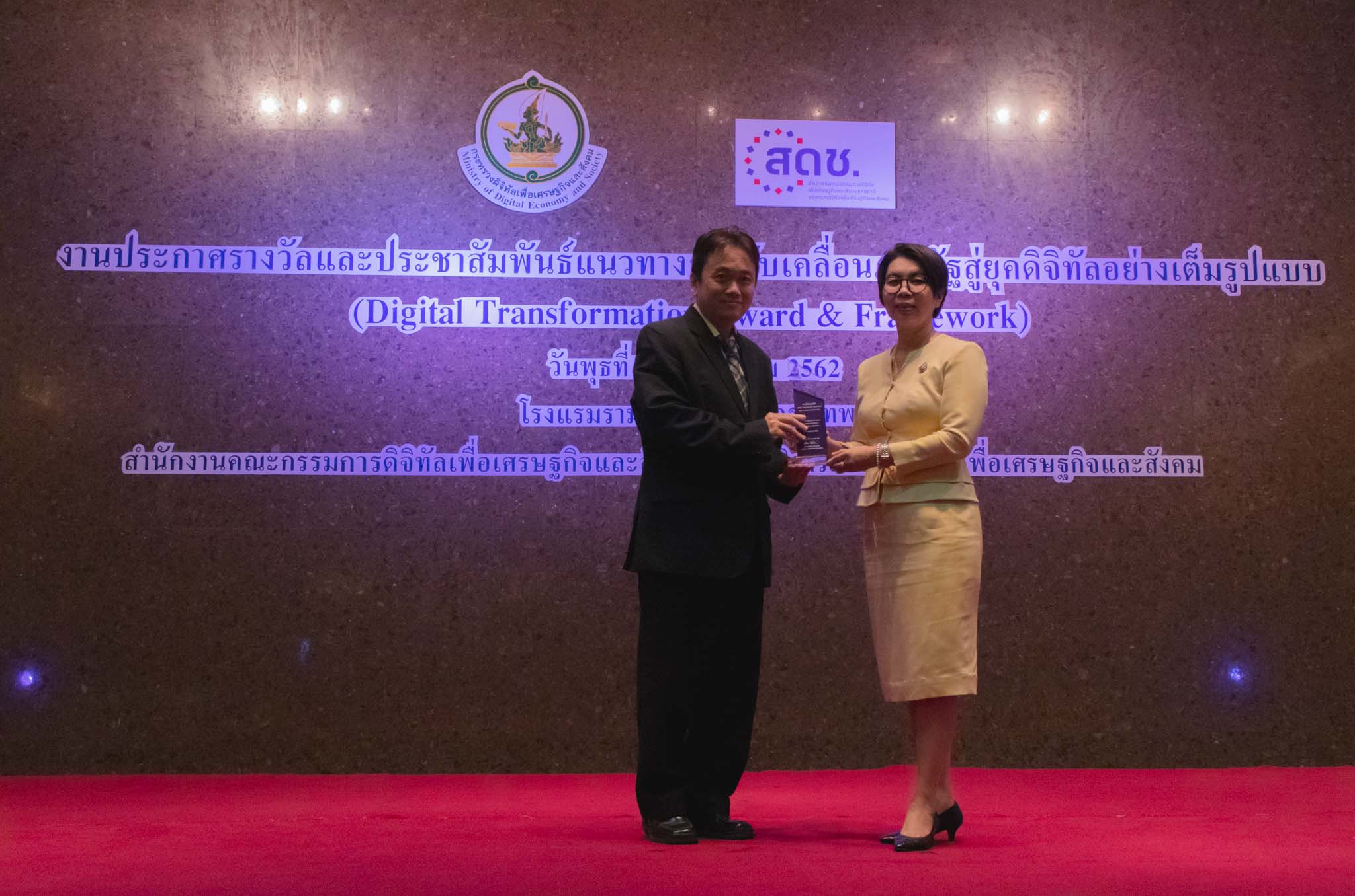 สำนักงานคณะกรรมการดิจิทัลเพื่อเศรษฐกิจและสังคมแห่งชาติ หรือ สดช. จัดงานประกาศรางวัลโครงการขับเคลื่อนภาครัฐสู่ยุคดิจิทัลอย่างเต็มรูปแบบ (Digital Transformation Award 2019) ระยะ 5 ปี เมื่อวันที่ 24 กรกฎาคม 2562 ณ ห้องคอนเวนชั่น ชั้น 4 โรงแรมรามาการ์เด้นส์ กรุงเทพฯ โดยมี นางปิยนุช วุฒิสอน เลขาธิการคณะกรรมการดิจิทัลเพื่อเศรษฐกิจและสังคมแห่งชาติ เป็นประธานเปิดงานและมอบรางวัล