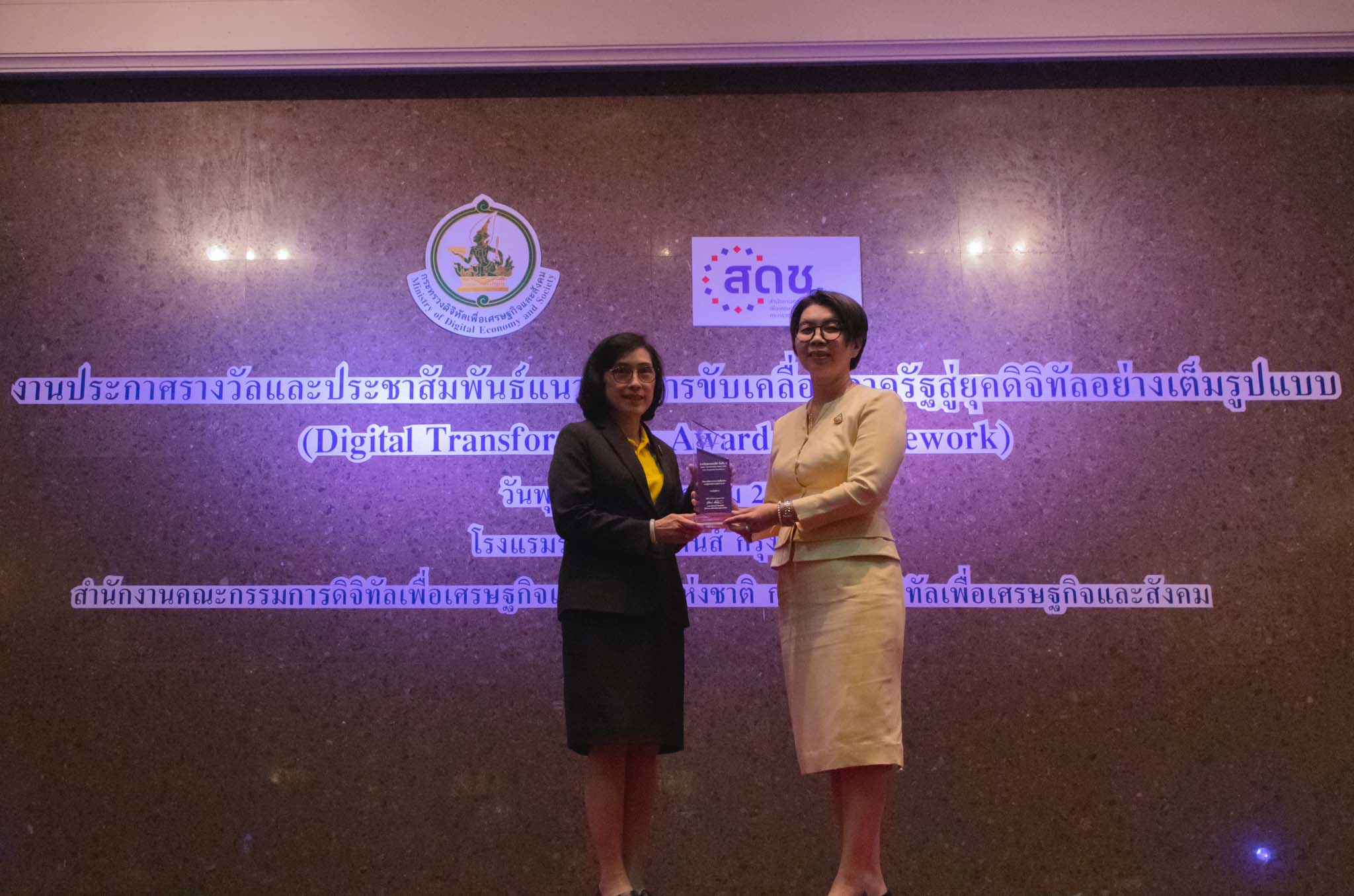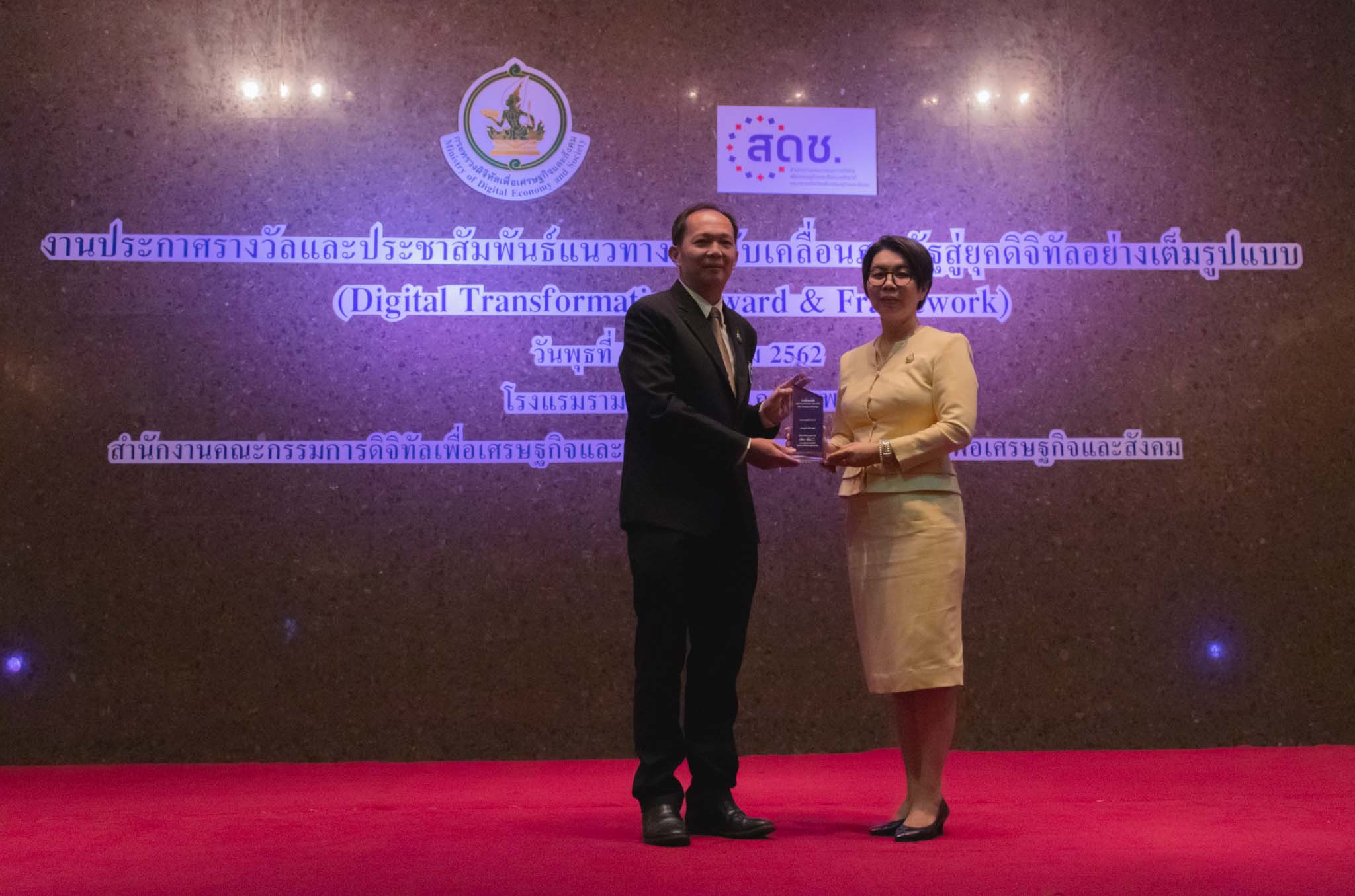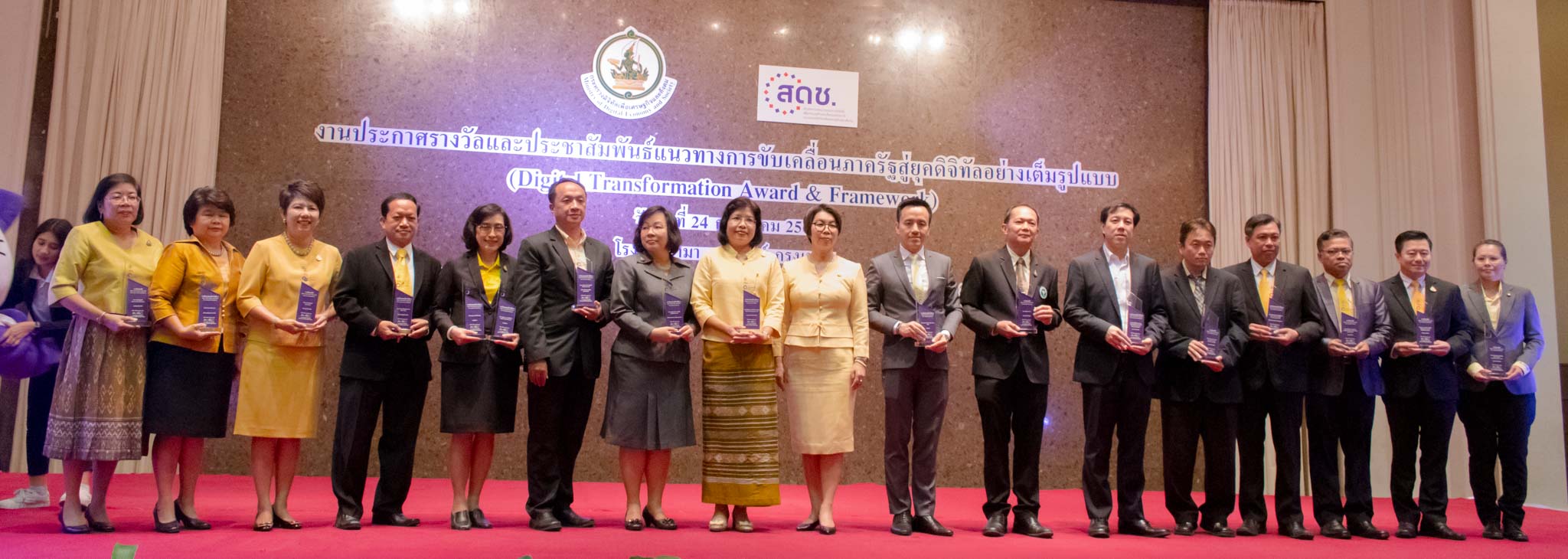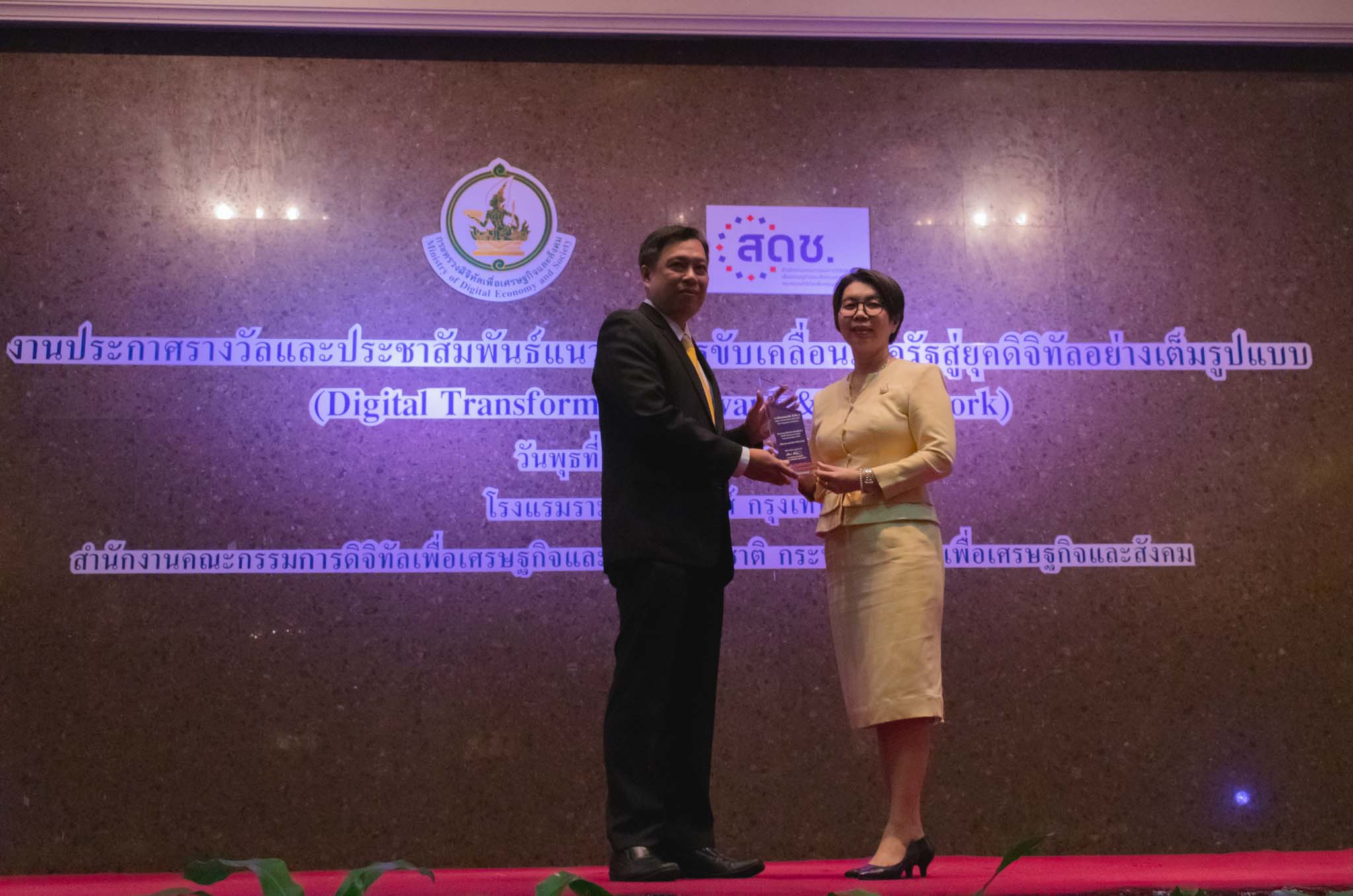 สำนักงานคณะกรรมการดิจิทัลเพื่อเศรษฐกิจและสังคมแห่งชาติ หรือ สดช. จัดงานประกาศรางวัลโครงการขับเคลื่อนภาครัฐสู่ยุคดิจิทัลอย่างเต็มรูปแบบ (Digital Transformation Award 2019) ระยะ 5 ปี เมื่อวันที่ 24 กรกฎาคม 2562 ณ ห้องคอนเวนชั่น ชั้น 4 โรงแรมรามาการ์เด้นส์ กรุงเทพฯ โดยมี นางปิยนุช วุฒิสอน เลขาธิการคณะกรรมการดิจิทัลเพื่อเศรษฐกิจและสังคมแห่งชาติ เป็นประธานเปิดงานและมอบรางวัล