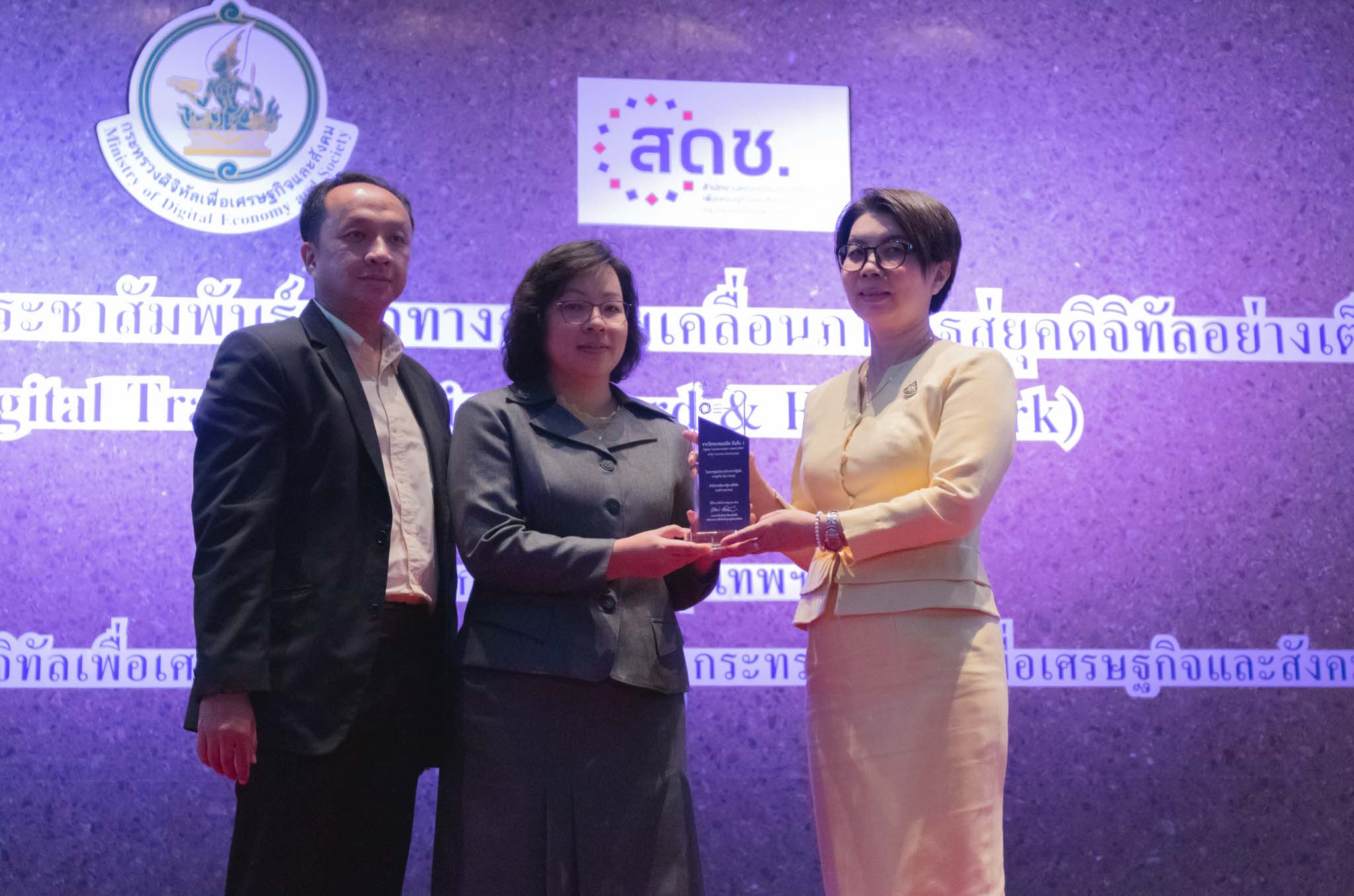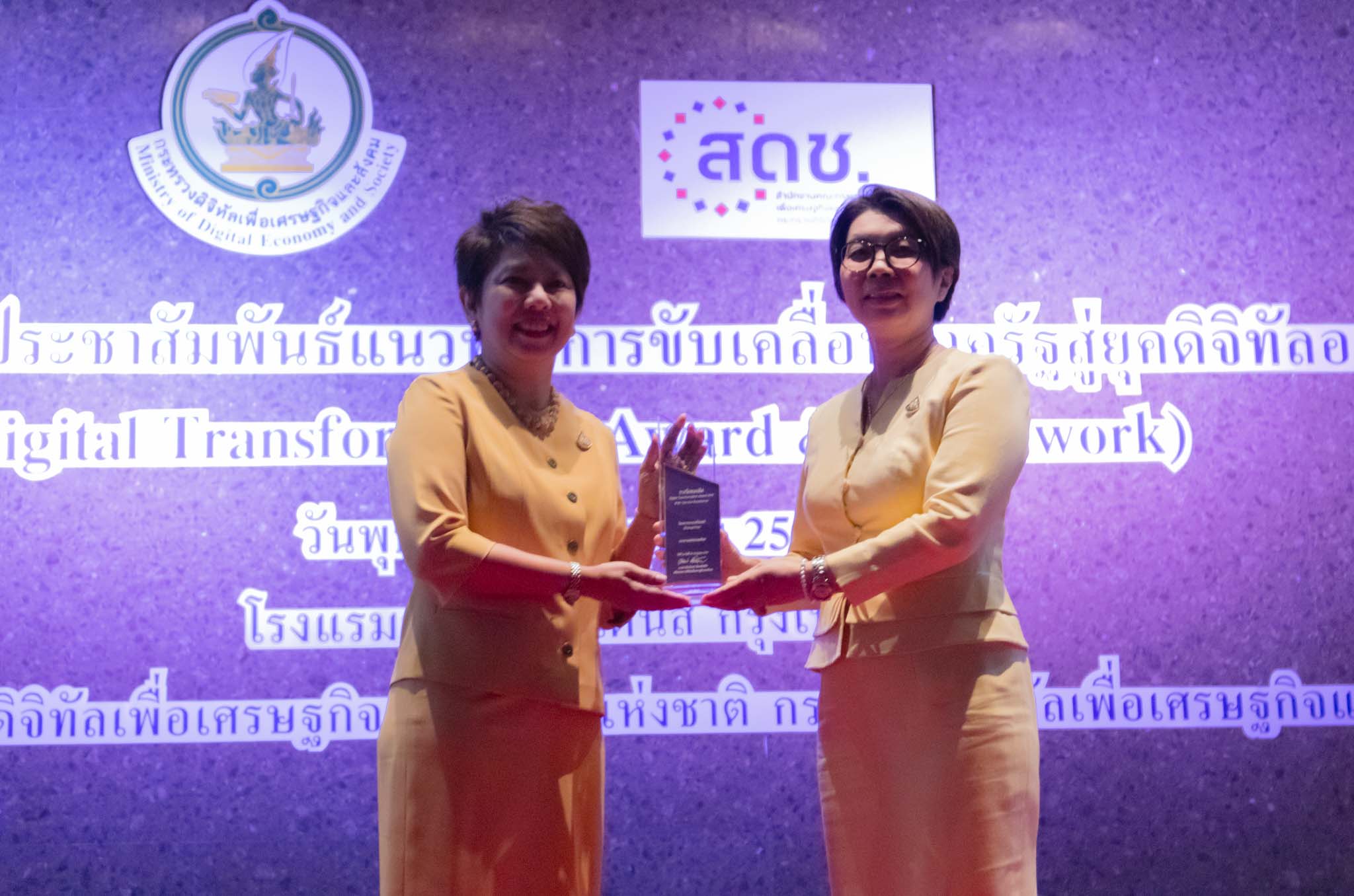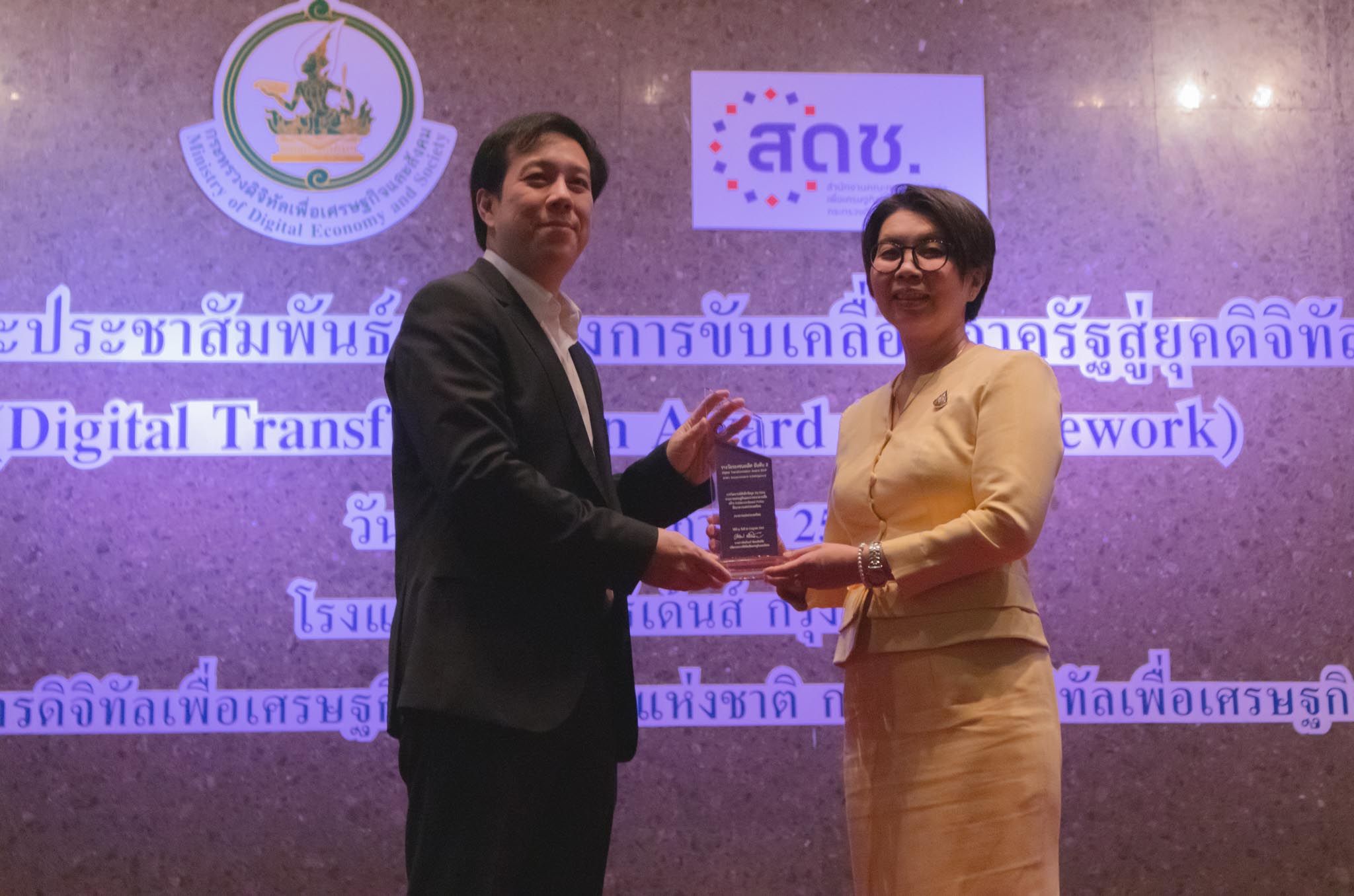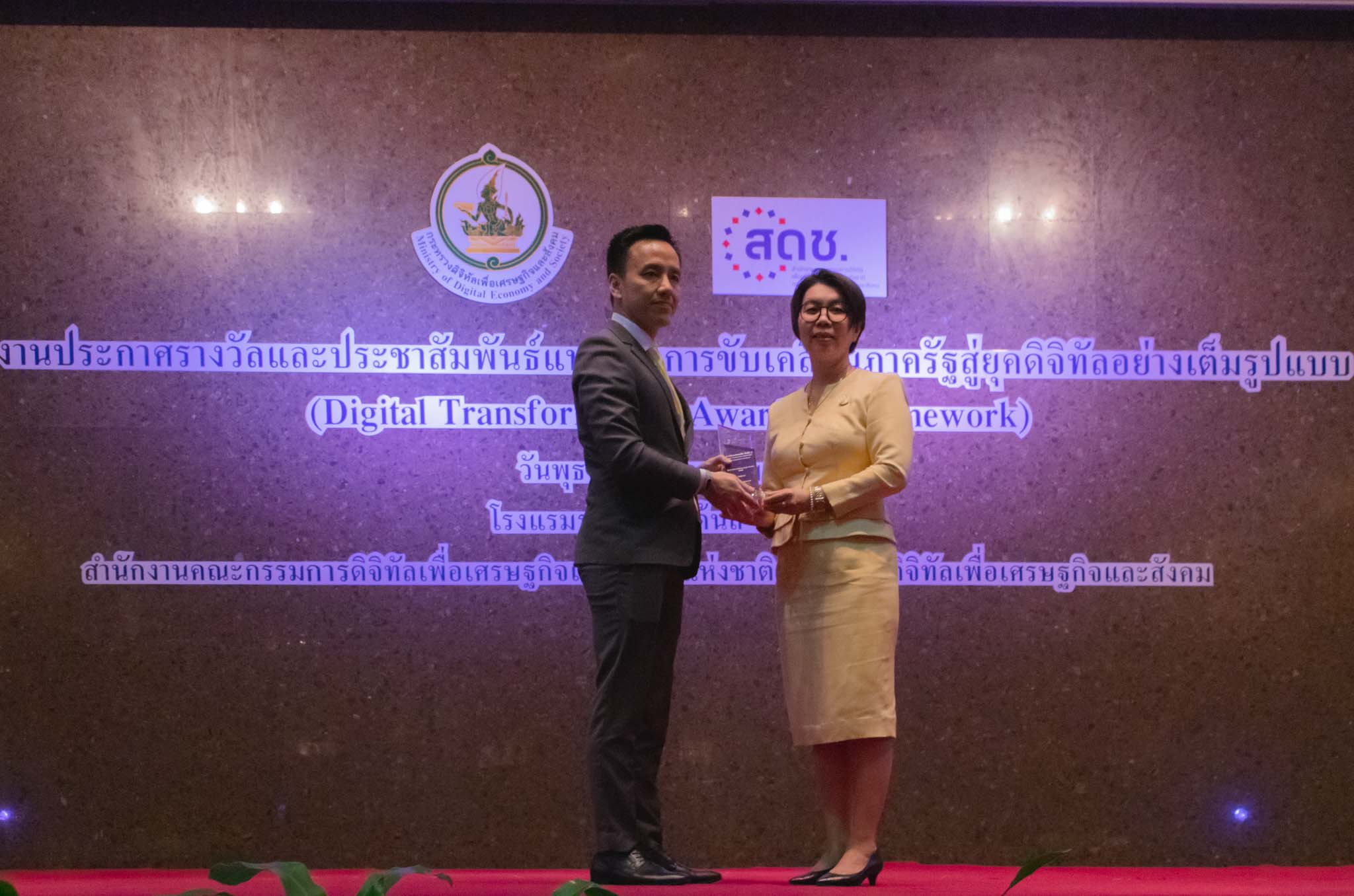 สำนักงานคณะกรรมการดิจิทัลเพื่อเศรษฐกิจและสังคมแห่งชาติ หรือ สดช. จัดงานประกาศรางวัลโครงการขับเคลื่อนภาครัฐสู่ยุคดิจิทัลอย่างเต็มรูปแบบ (Digital Transformation Award 2019) ระยะ 5 ปี เมื่อวันที่ 24 กรกฎาคม 2562 ณ ห้องคอนเวนชั่น ชั้น 4 โรงแรมรามาการ์เด้นส์ กรุงเทพฯ โดยมี นางปิยนุช วุฒิสอน เลขาธิการคณะกรรมการดิจิทัลเพื่อเศรษฐกิจและสังคมแห่งชาติ เป็นประธานเปิดงานและมอบรางวัล