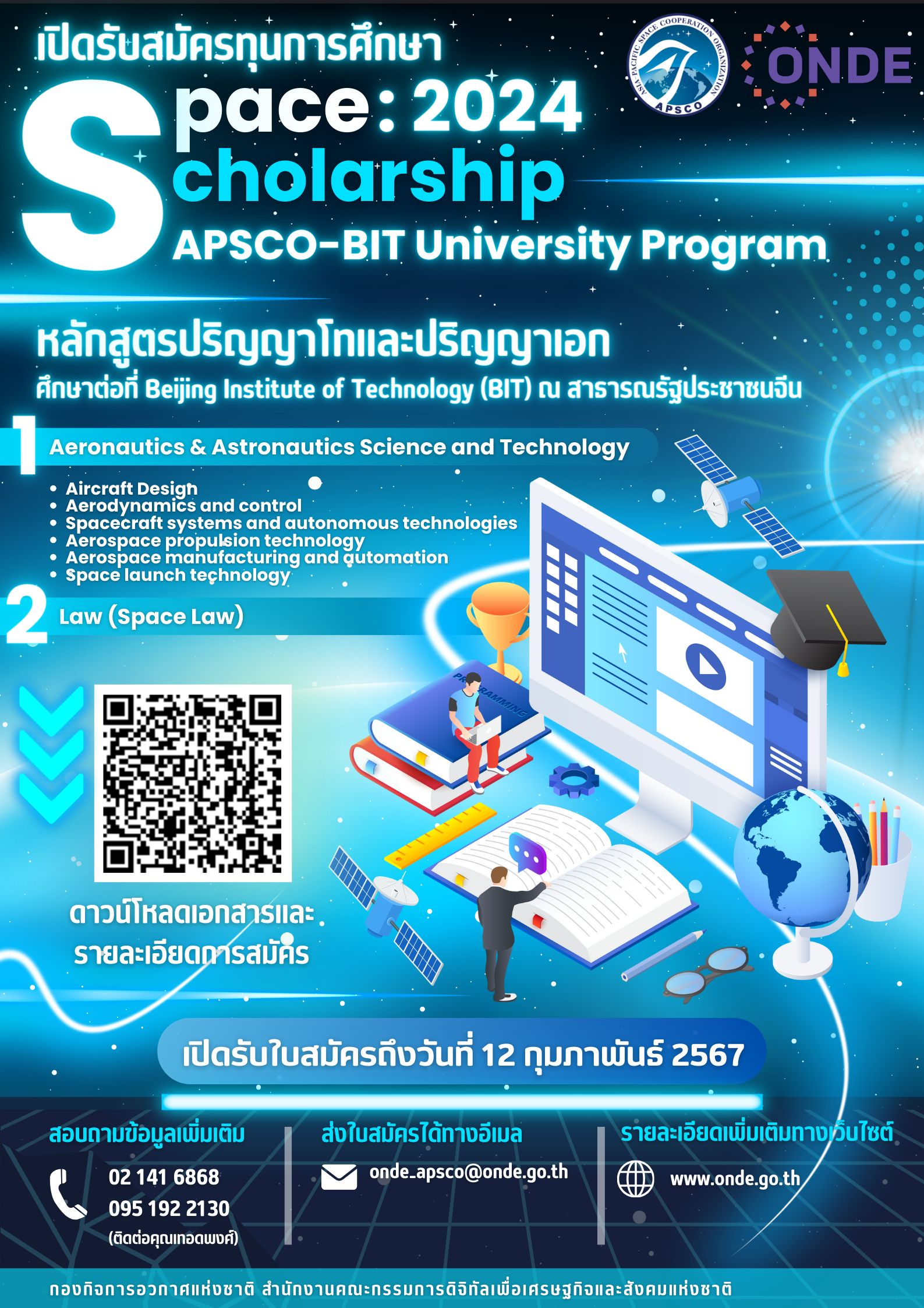 การสมัครรับทุนการศึกษาระดับปริญญาโท APSCO-BIT University-Master Program-2024 และปริญญาเอก APSCO-BIT University-PhD Program-2024 ภายใต้กรอบความร่วมมือ องค์การ APSCO ประจำปี พ.ศ. 2567