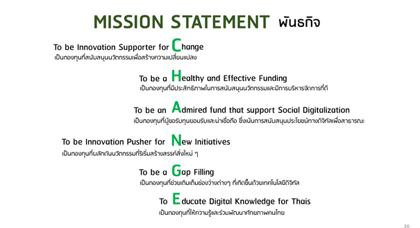 “เป็นกองทุนชั้นนำในการผลักดันและเพิ่มขีดความสามารถการพัฒนาเศรษฐกิจและสังคมไทยด้วยเทคโนโลยีดิจิทัล”