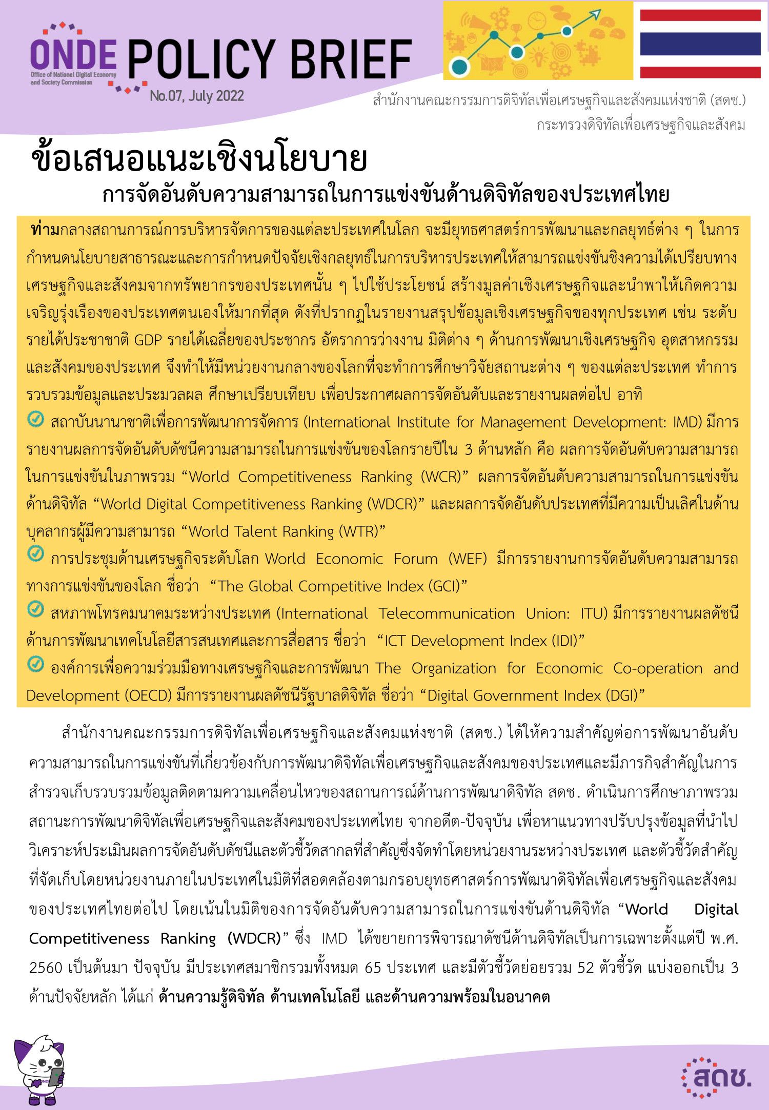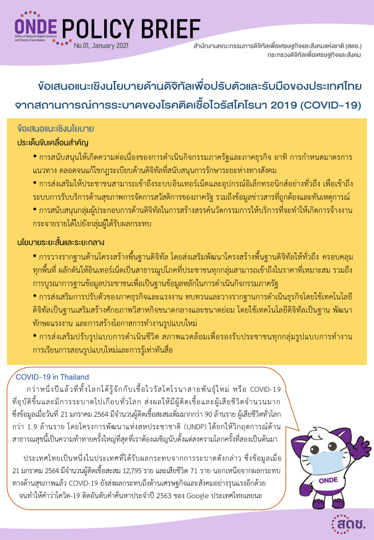 - เสนอแนะนโยบายและมาตรการ เพื่อส่งเสริมการให้เกิดการใช้งานเทคโนโลยีดิจิทัลภายใต้มาตรฐานที่ประชาชนสามารถเข้าถึง และใช้ประโยชน์ได้อย่างเท่าเทียม ทั่วถึง และเป็นที่ยอมรับในระดับสากล